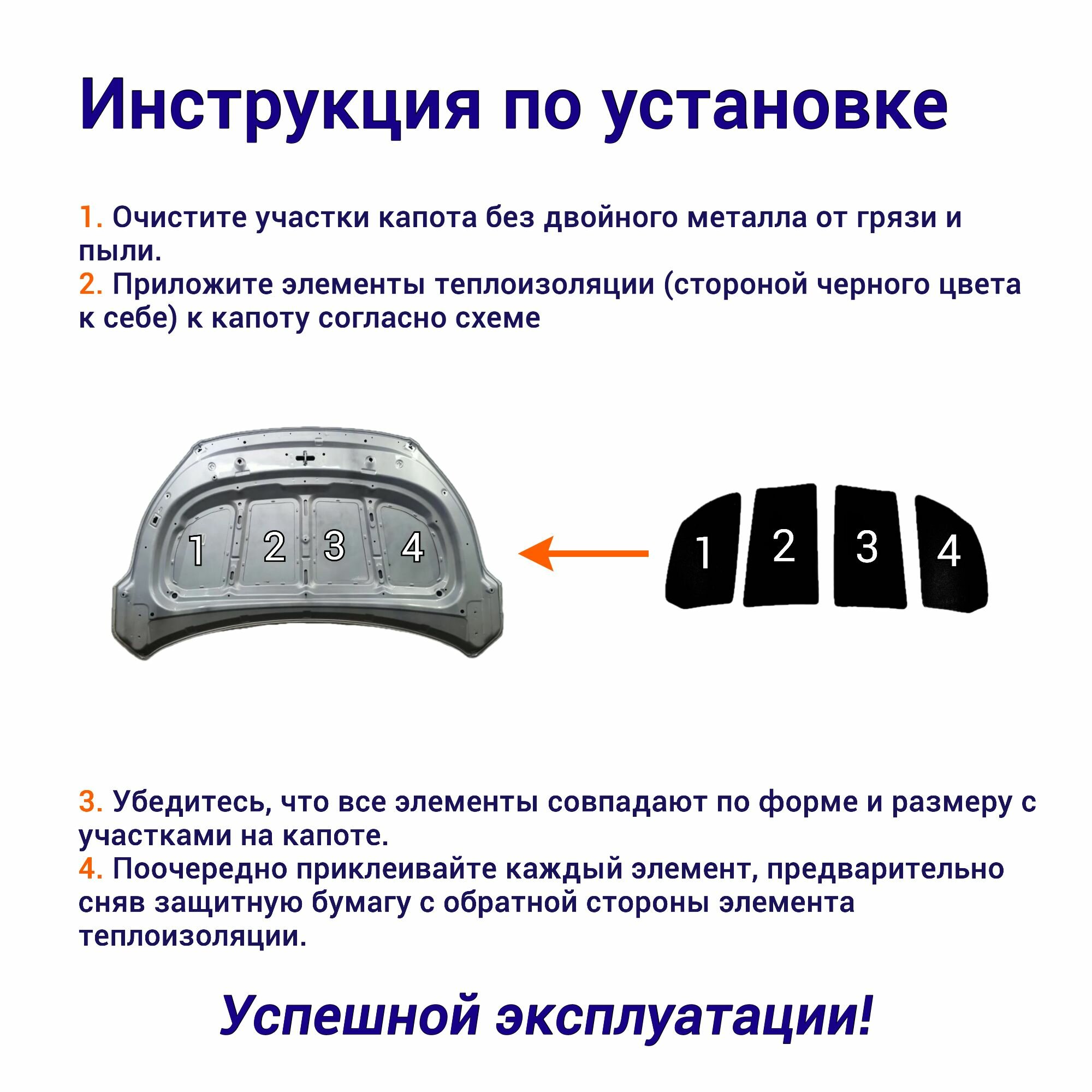 Теплоизоляция капота Лада Веста самоклеящаяся на основе вспененного каучука комплект из 4 частей
