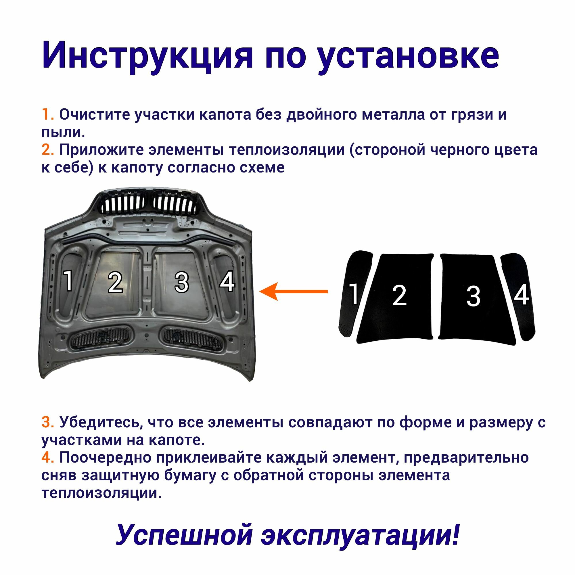 Теплоизоляция капота Лада Веста самоклеящаяся на основе вспененного каучука комплект из 4 частей