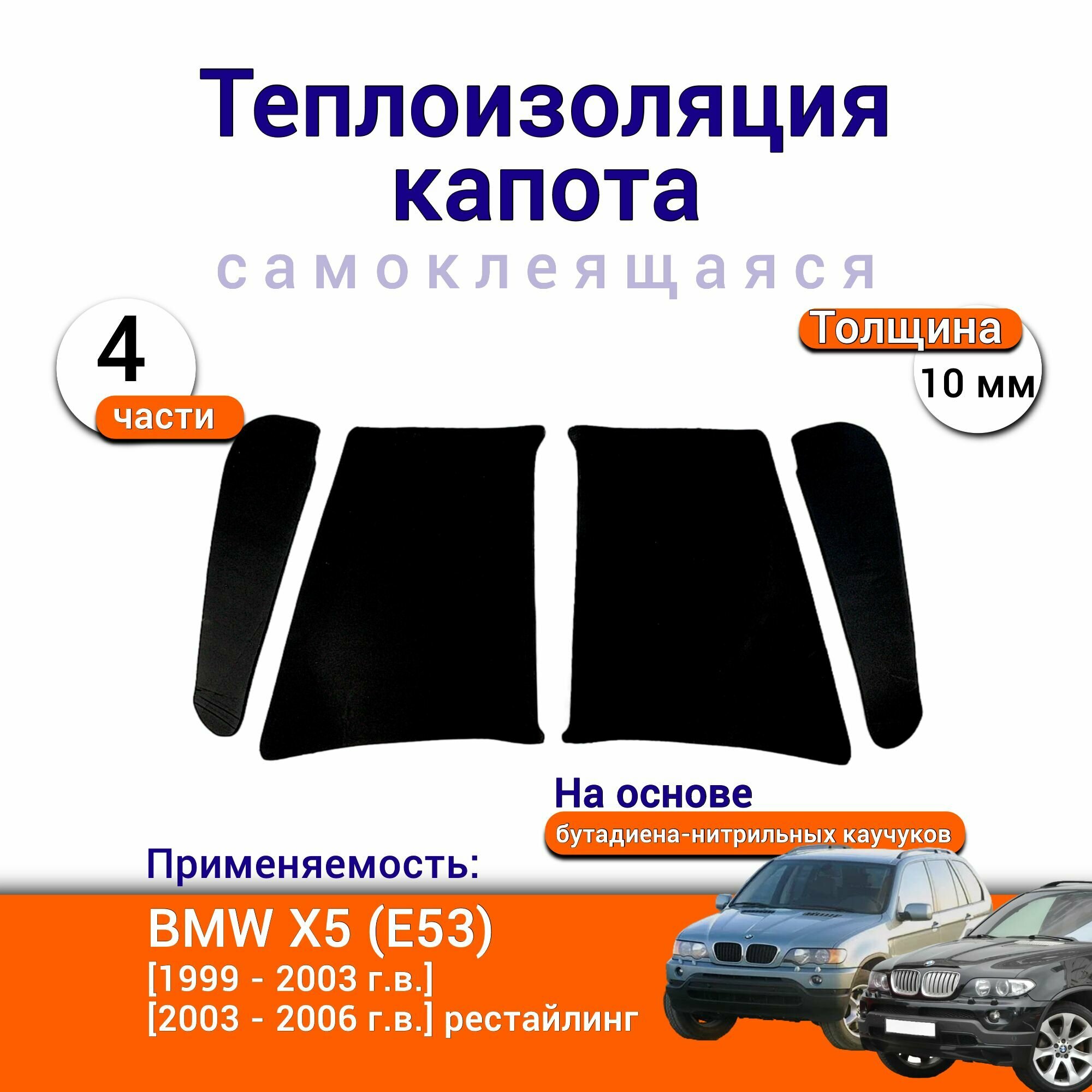 Купить Теплоизоляция капота BMW X5 E53 1999-2006 самоклеящаяся на основе вспененного каучука комплект из 4 частей