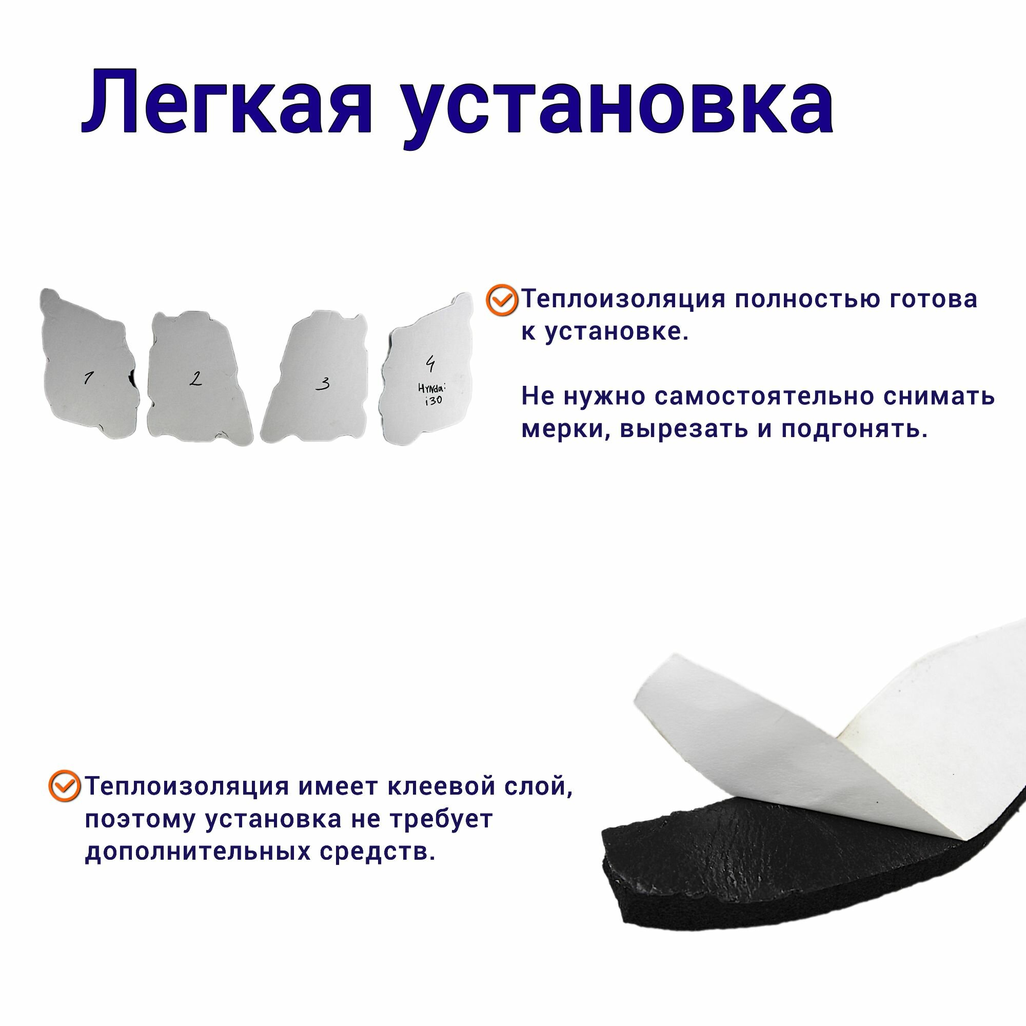 Теплоизоляция капота Hyundai ix35 1 поколение 2010-2015 самоклеящаяся на основе вспененного каучука комплект из 4 частей