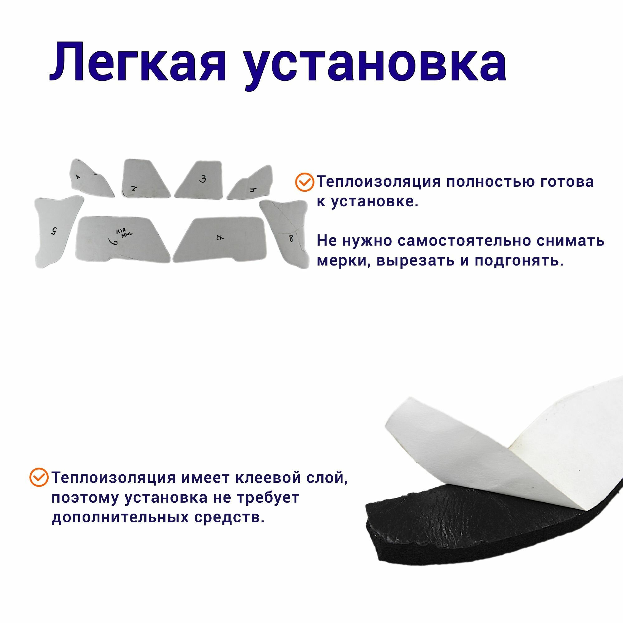 Теплоизоляция капота KIA Spectra 1 и 2 2004-2011 самоклеящаяся на основе вспененного каучука комплект из 8 частей