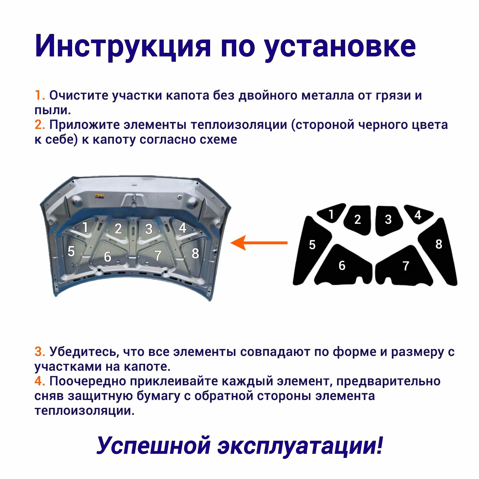 Теплоизоляция капота Лада 2192 Калина 2 Гранта 2190 самоклеящаяся на основе вспененного каучука комплект из 9 частей