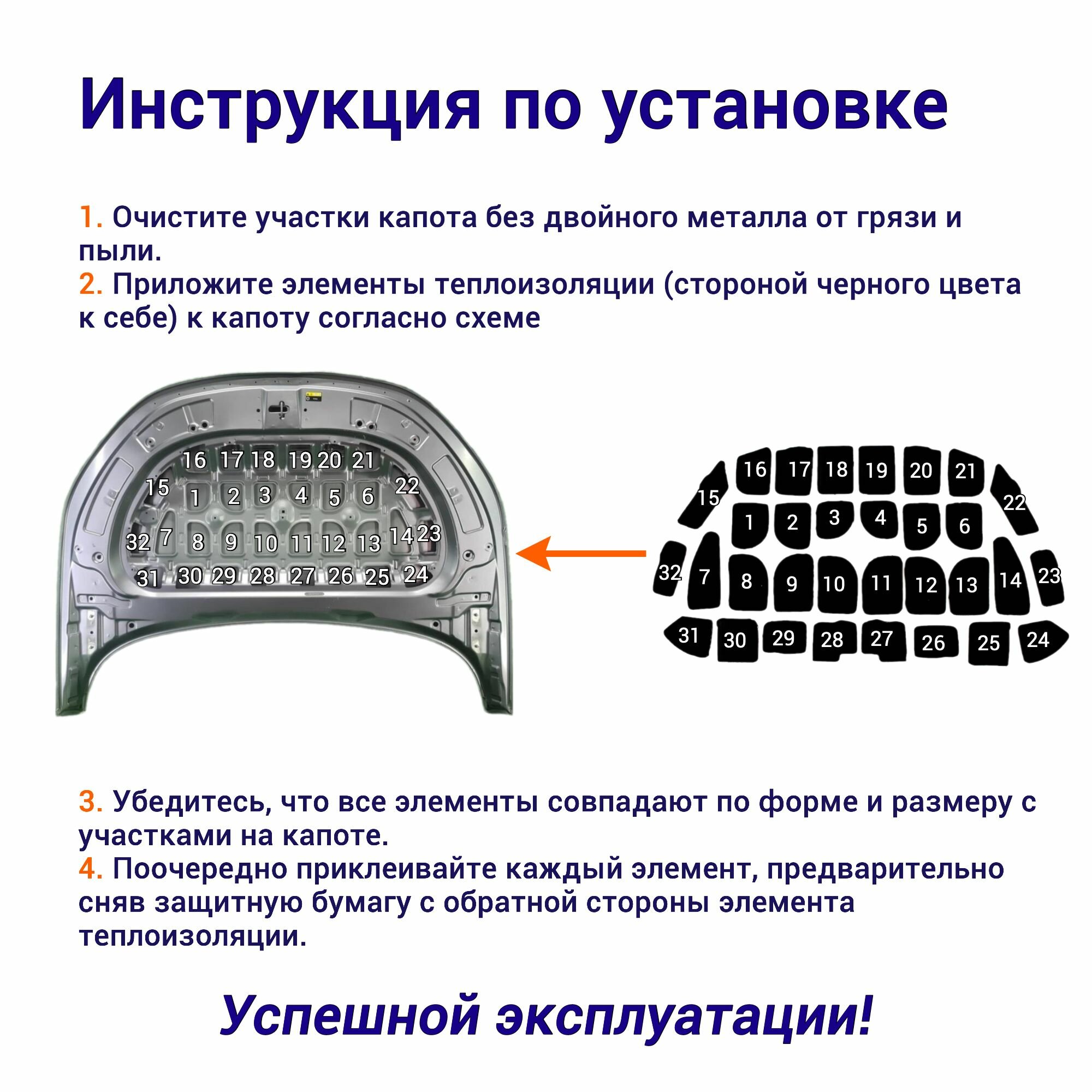 Теплоизоляция капота BYD F3 1 поколение 2005-2013 самоклеящаяся на основе вспененного каучука комплект из 8 частей