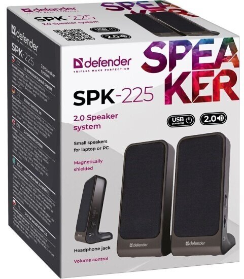 Defender Компьютерные колонки 2.0 DEFENDER SPK-225, 2х2Вт, USB, черно-серые