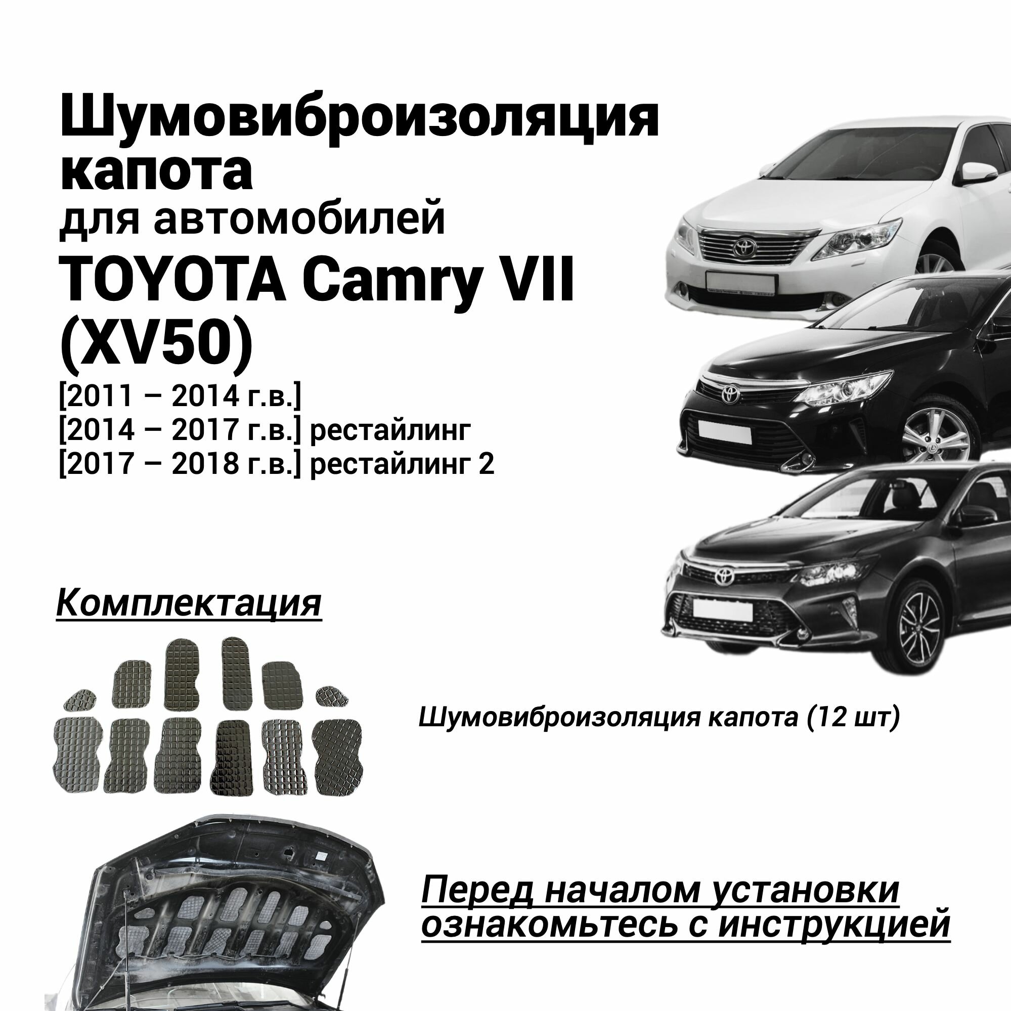 СохранитьШумоизоляция капота Toyota Camry VII (XV50) 2011-2018 толщина 4 мм шумовиброизоляция бутилкаучуковая основа с фольгой интересное: