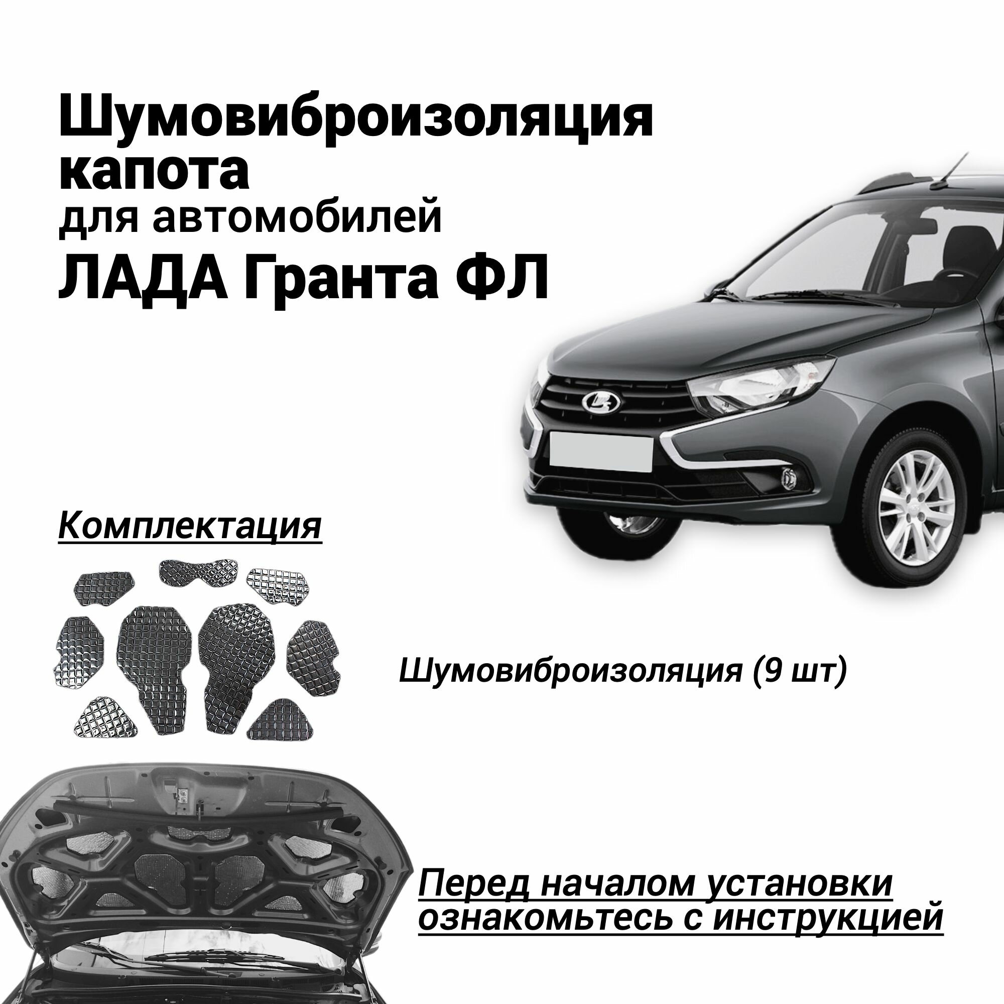 Купить Шумоизоляция капота Лада Гранта FL толщина 4 мм комплект шумовиброизоляции бутилкаучуковая основа с фольгой из 9 частей