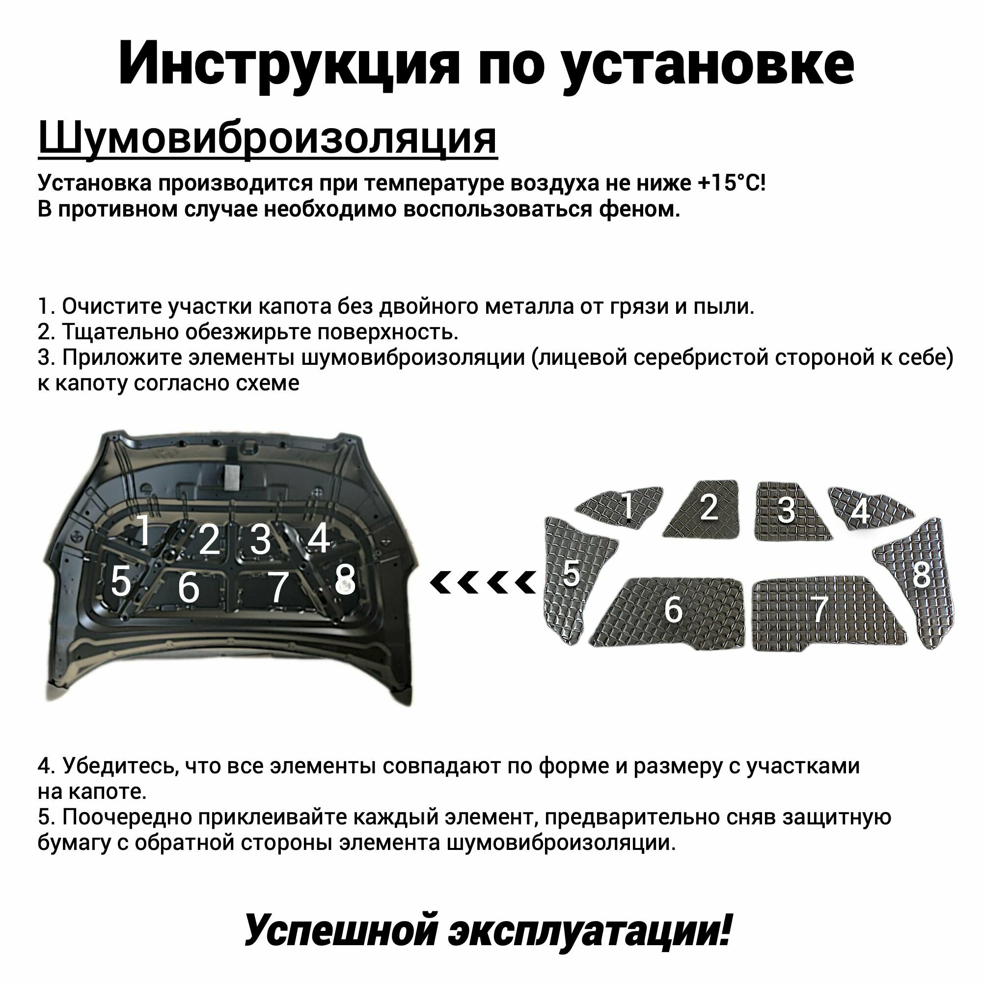 Шумовиброизоляция для капота Лада Ларгус Рено Логан толщина 4 мм комплект из 5 частей штатная установка
