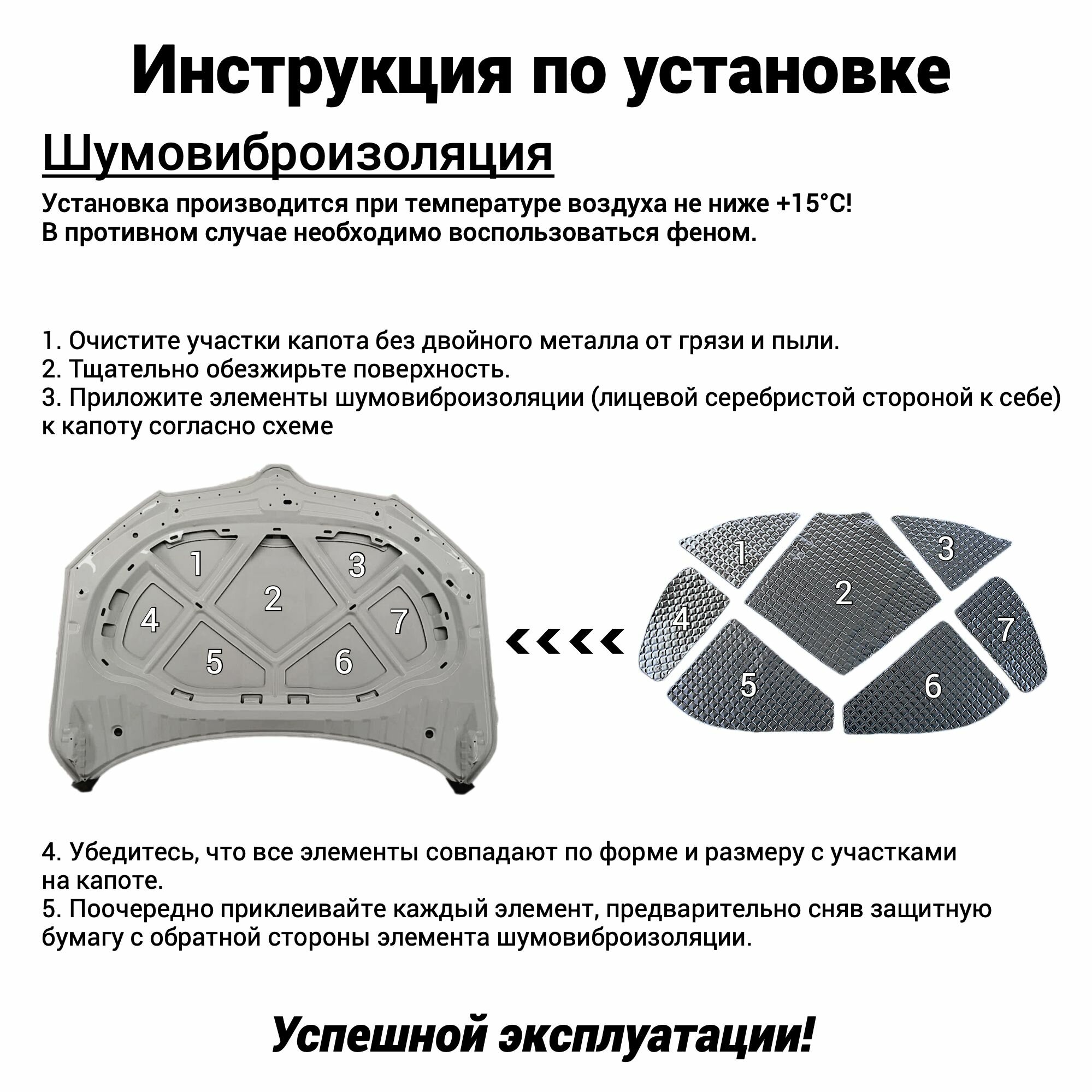 Шумоизоляция капота Chery Tiggo 7 Pro Max T1E Лада X-cross 5 4 мм шумовиброизоляция бутилкаучуковая основа с фольгой