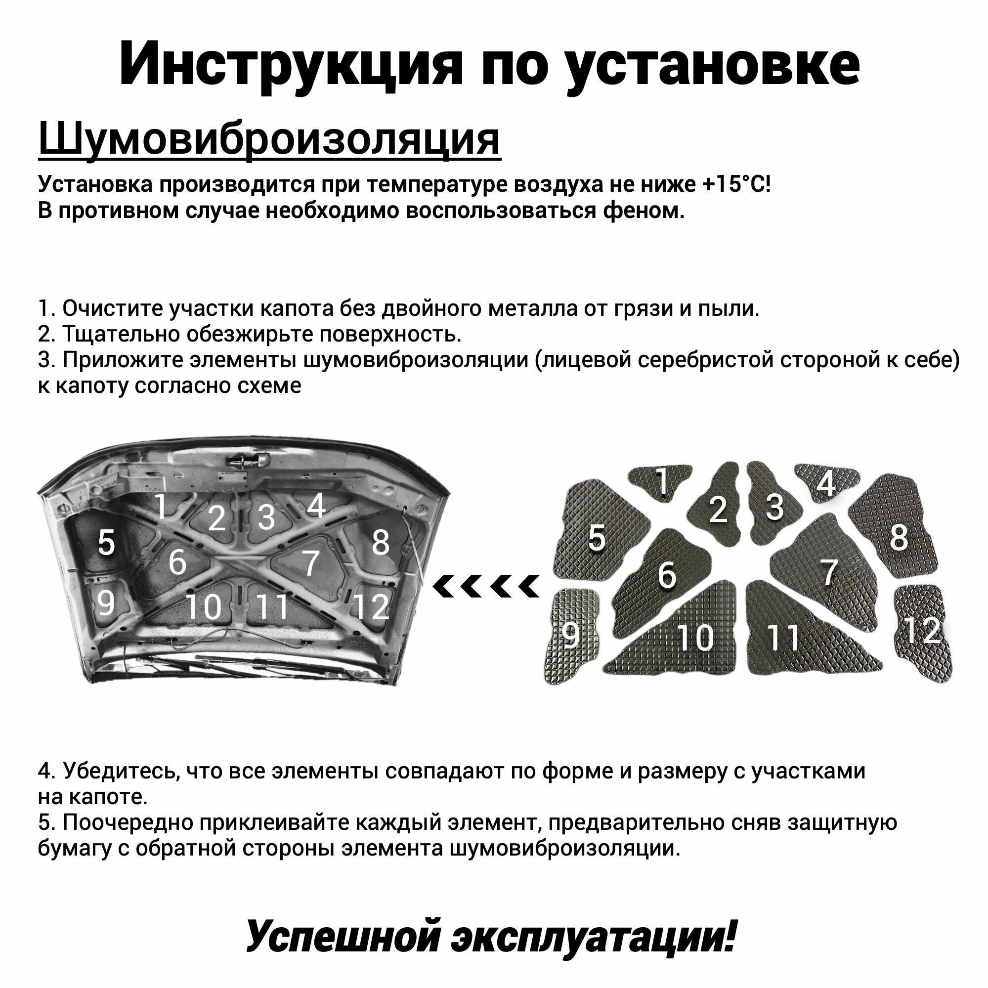 Шумовиброизоляция для капота Лада Ларгус Рено Логан толщина 4 мм комплект из 5 частей штатная установка