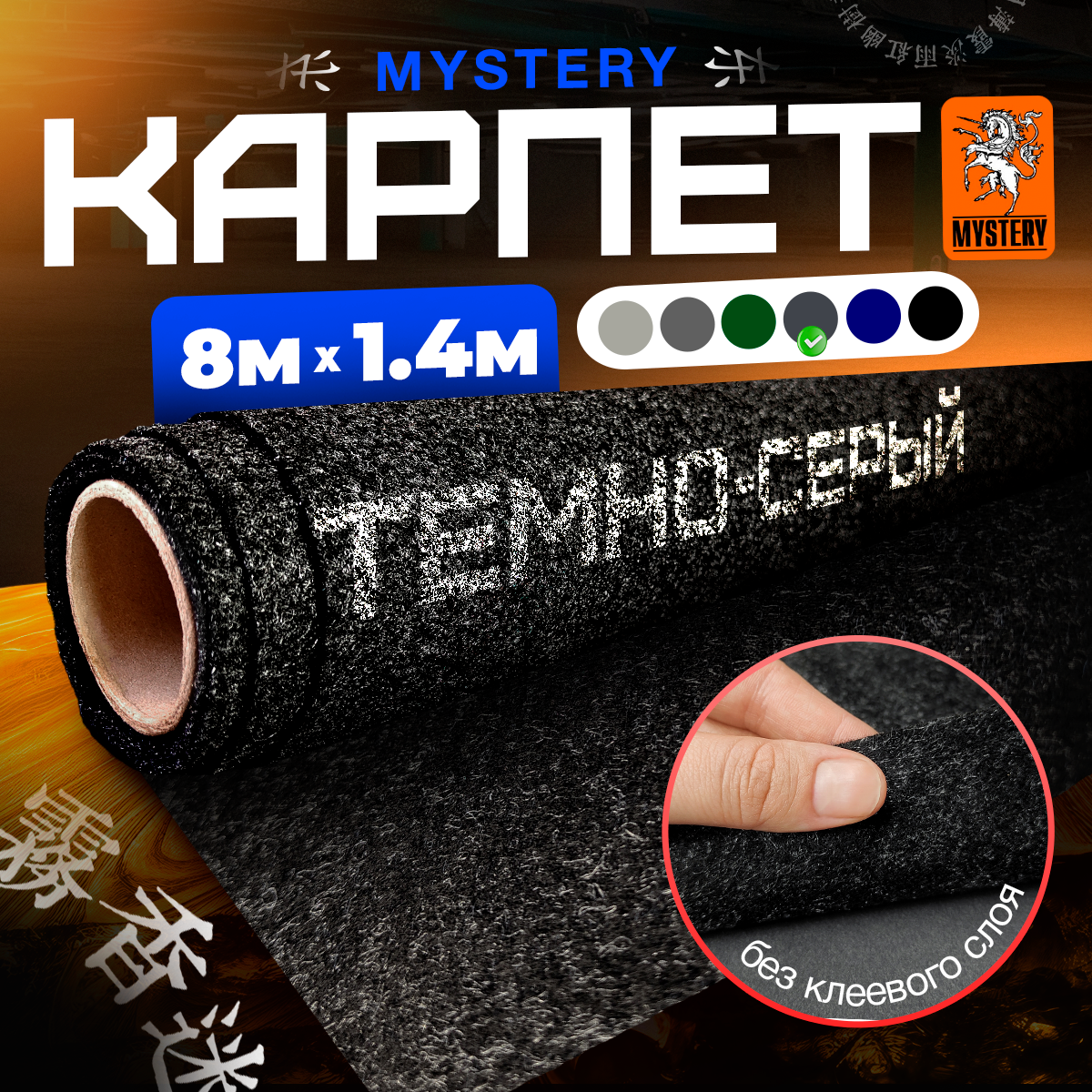 Карпет Mystery Grey / Мистери Серый - 8 пог. м. х 1.4м - ширина - Акустический декоративный материал (Без клеевого слоя)