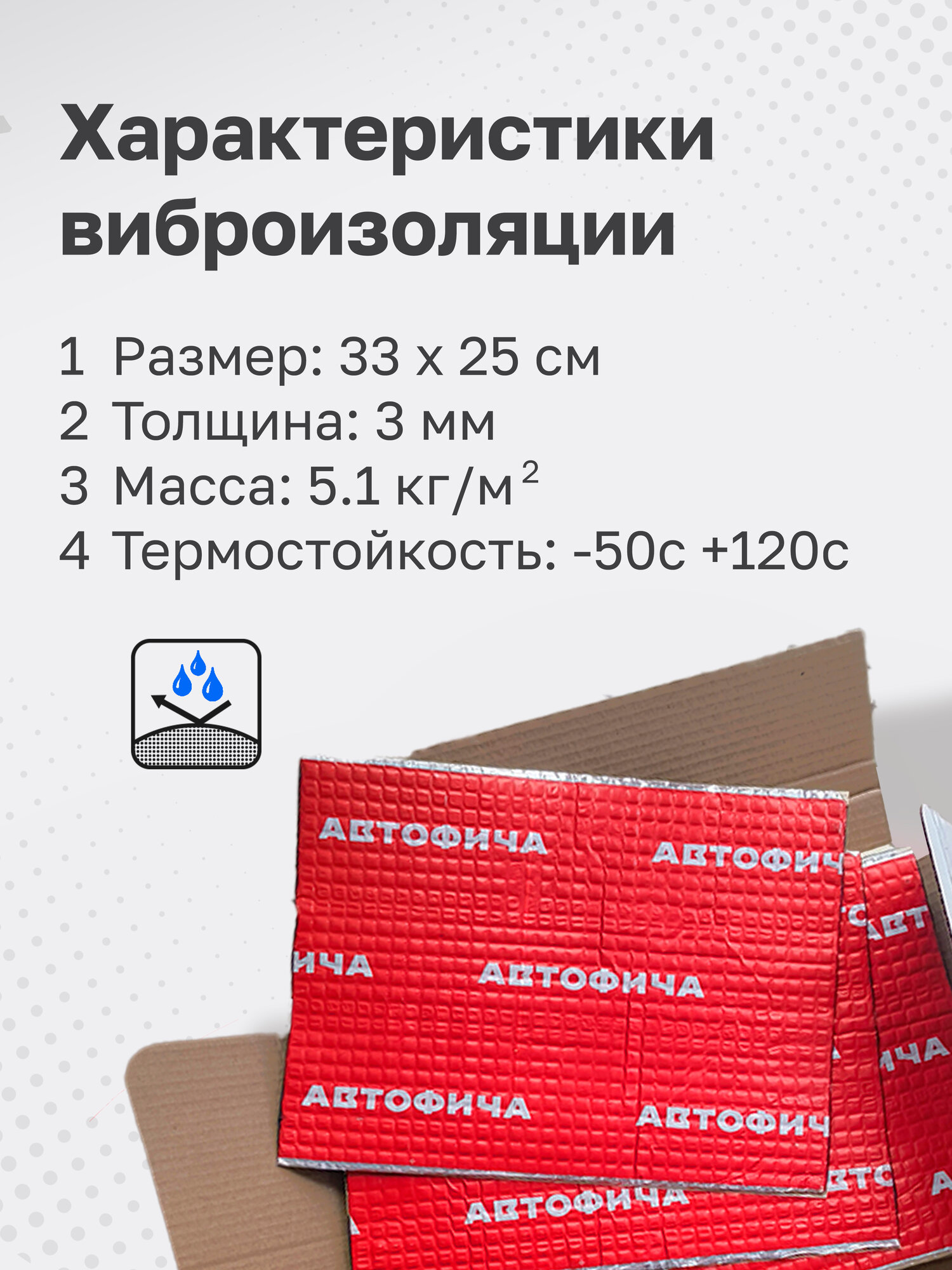 Виброизоляция и шумоизоляция АВТОФИЧА для автомобиля, набор 30 листов, 3 мм, 33х25 см