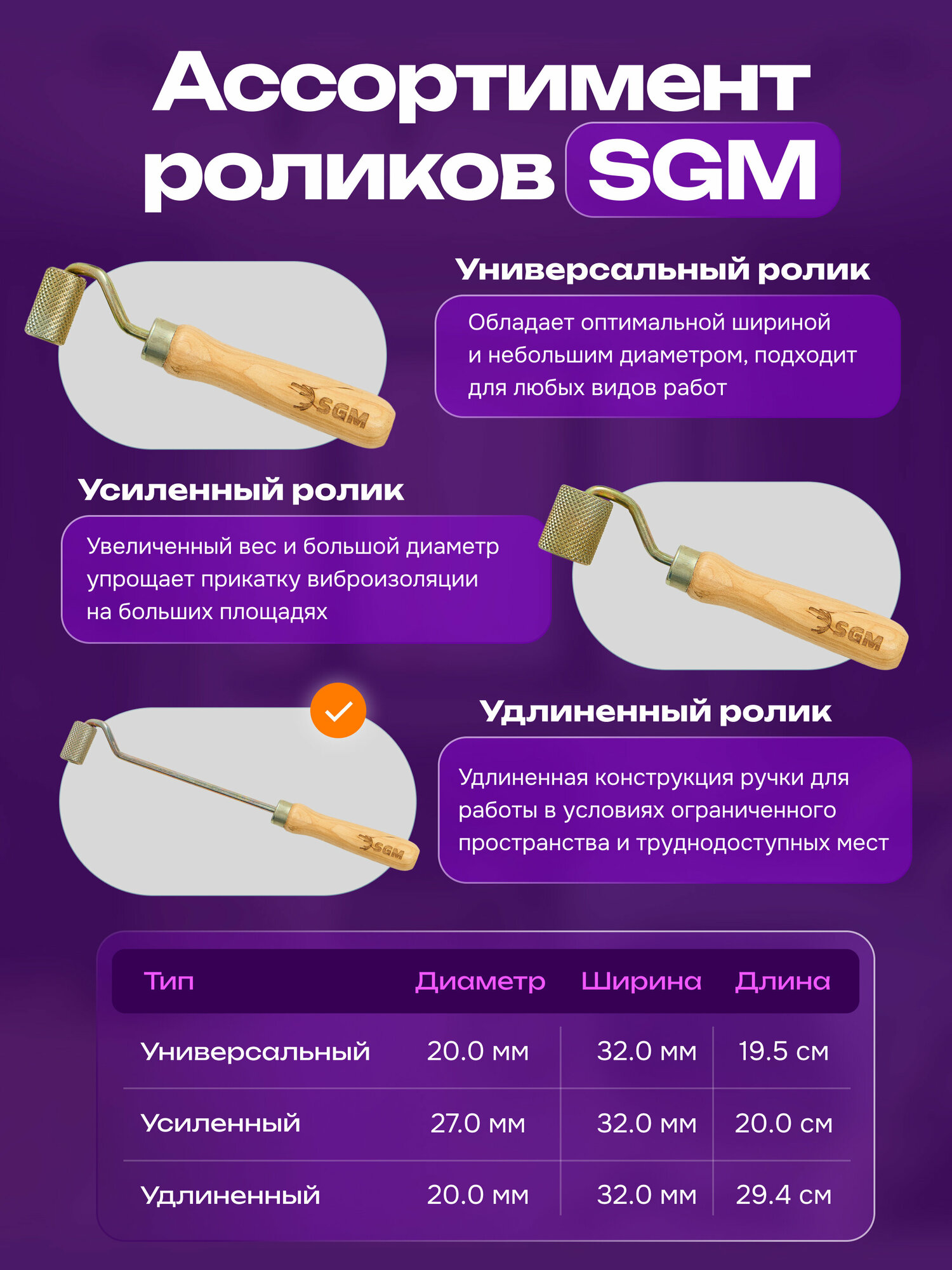 Валик прикаточный удлиненный SGM / ролик для шумоизоляции автомобиля интересное: