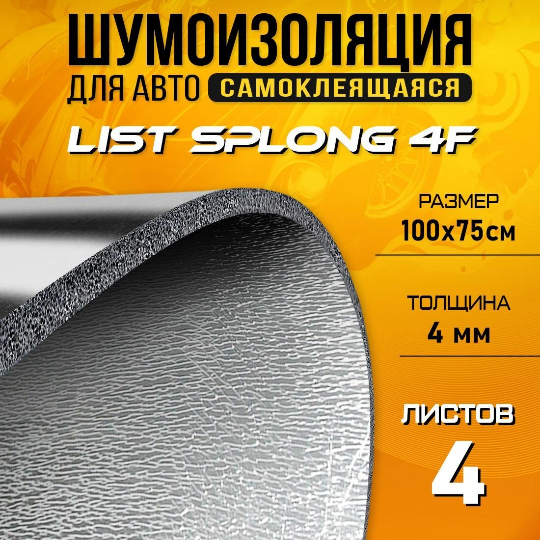 Шумоизоляция для авто с теплоэкраном DreamCar List Splong 8F - 4 листа (100 х 75см) / Теплоизоляция самоклеющаяся 8
