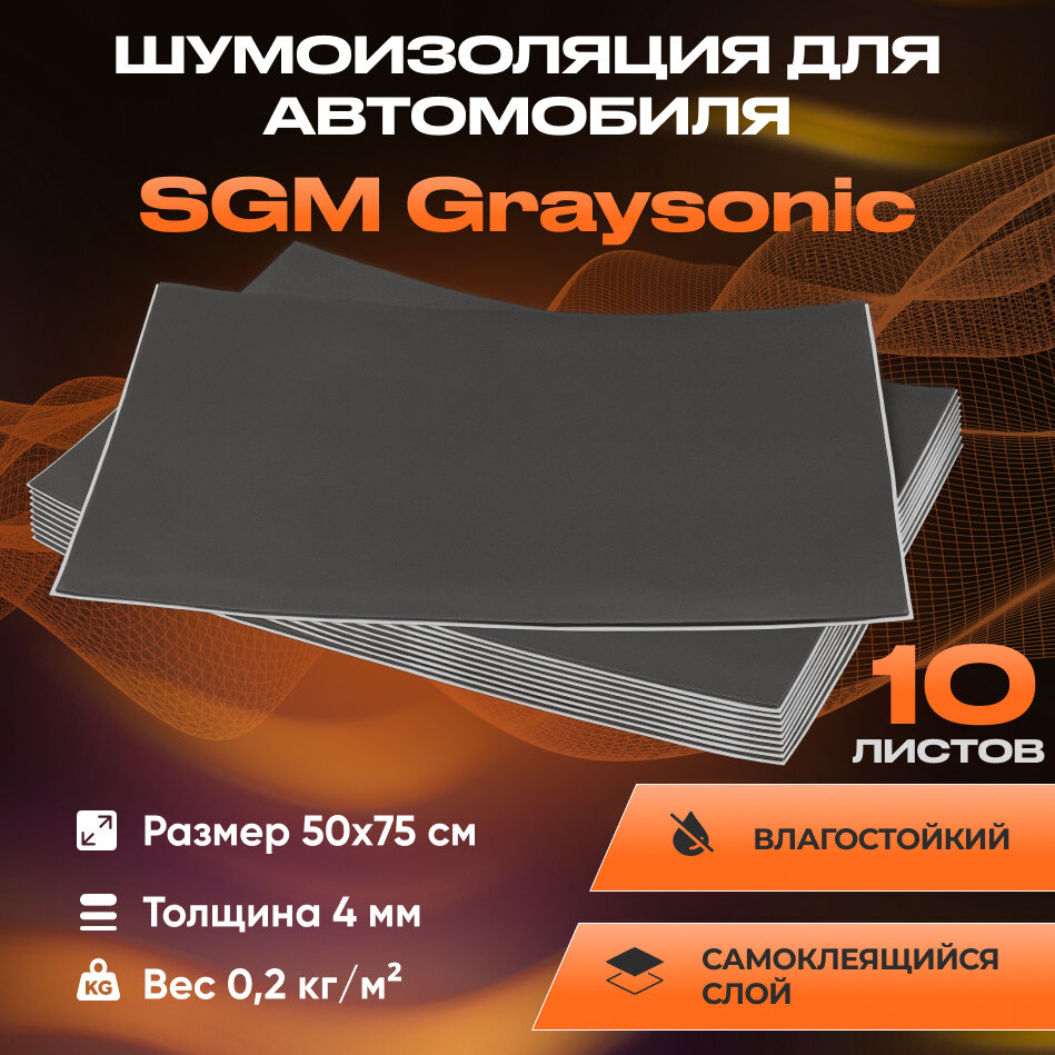 Шумоизоляция для автомобиля SGM Graysonic, 10 листов. Комплект звукоизоляции с теплоизолятором. Шумка для авто интересное:
