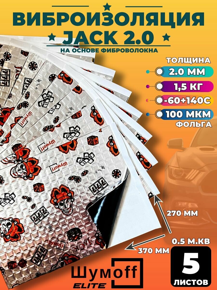 Купить Виброизоляция Шумофф Jack -5 листов, 37 х 27см; шумоизоляция для автомобиля 2мм