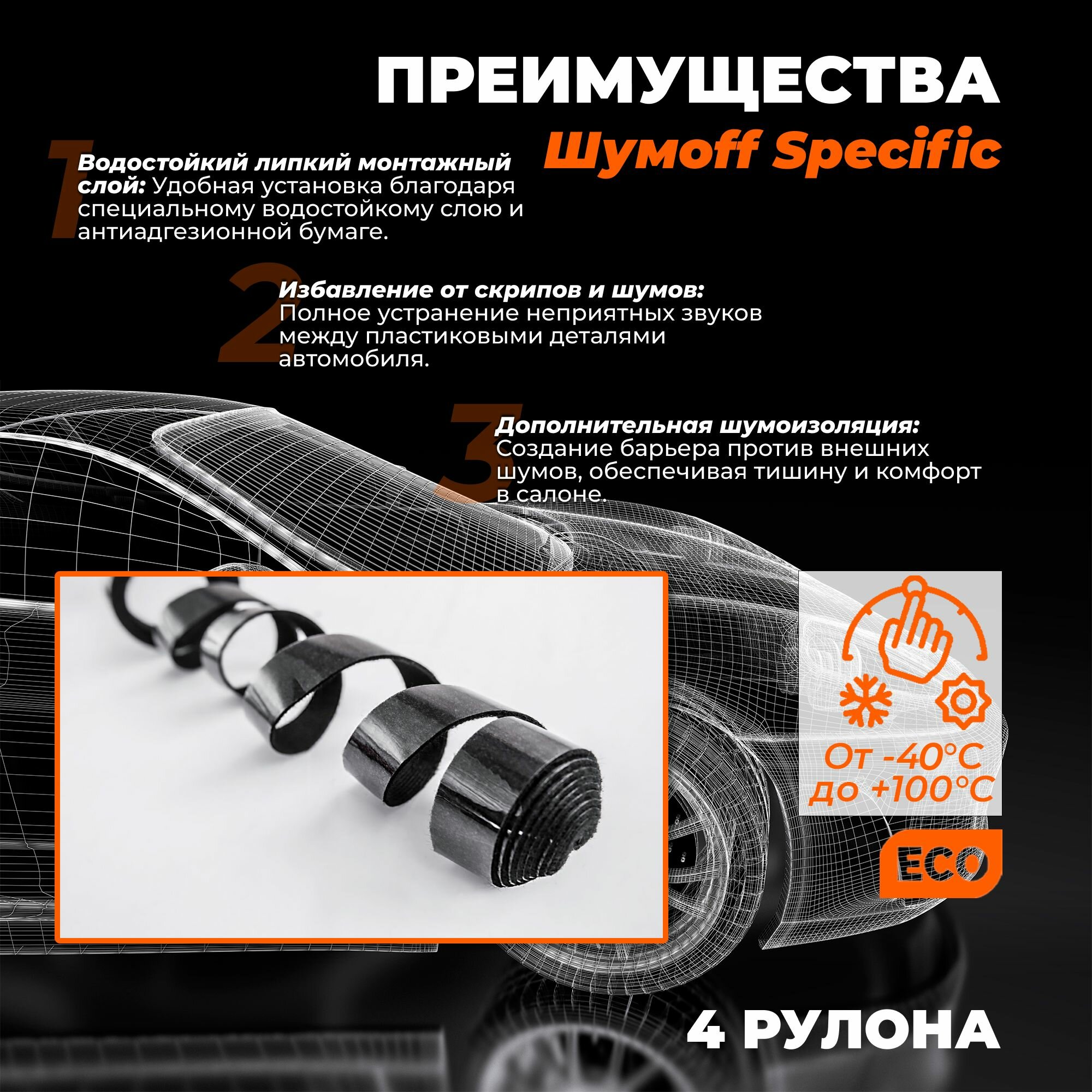 Лента антискрип самоклеящаяся для шумоизоляции авто Шумофф Specific - 4 шт / Общая длина 12.5 м интересное: