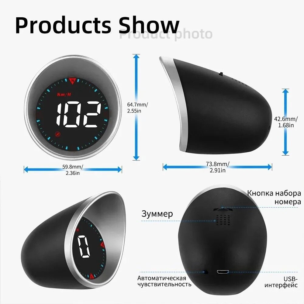 | Комплектация | Новый автомобильный GPS HUD G5 Head Up Дисплей автометр GPS спидометр. Функции: Скорость транспортного средства (км/ч или миль/ч), часы, время в пути, расстояние в пути, высота, количество спутников, компас, сигнализация о превышении скорости, напоминание об усталости за рулем Установка на приборную панель. Настройка ручной или автоматической регулировки яркости, переключатель звукового сигнала тревоги, автоматическое включение / выключение Комплектация Проектор USB-кабель Силиконовая крепежная пластина Инструкция на английском языке |