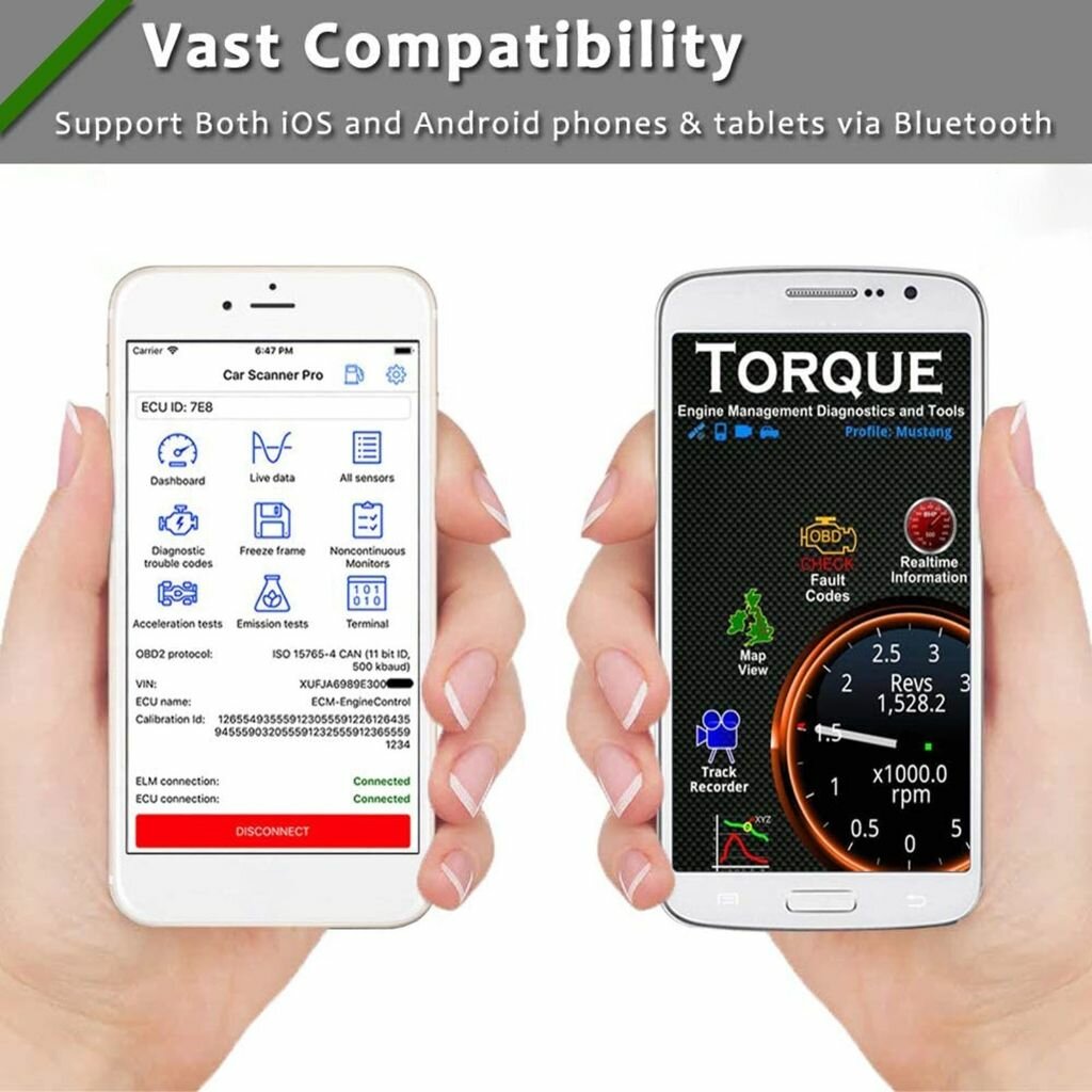 Купить Беспроводной Bluetooth-совместимый диагностический сканер OBD2, считыватель автомобильных кодов и инструмент сканирования OBD2-ELM-327 для IOS Android
