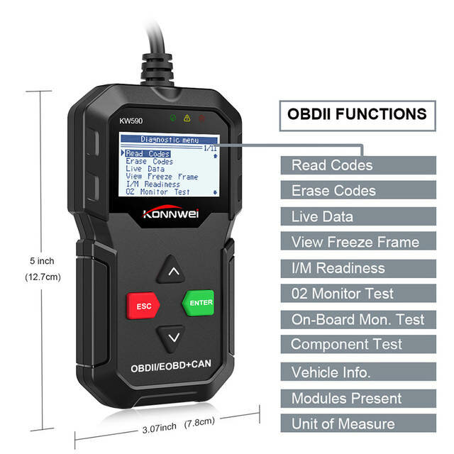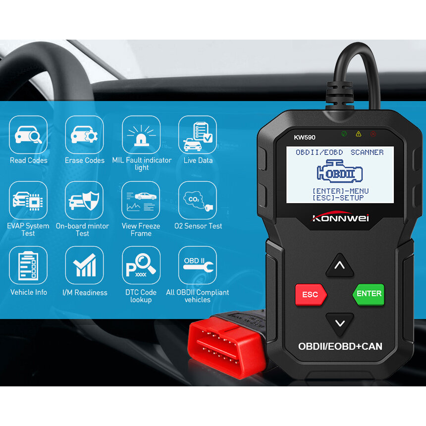 Купить Автосканер OBD KONNWEI KW-590 (OBD2/EOBD+CAN) Windows 32-разрядная, 12В, 127*78 мм