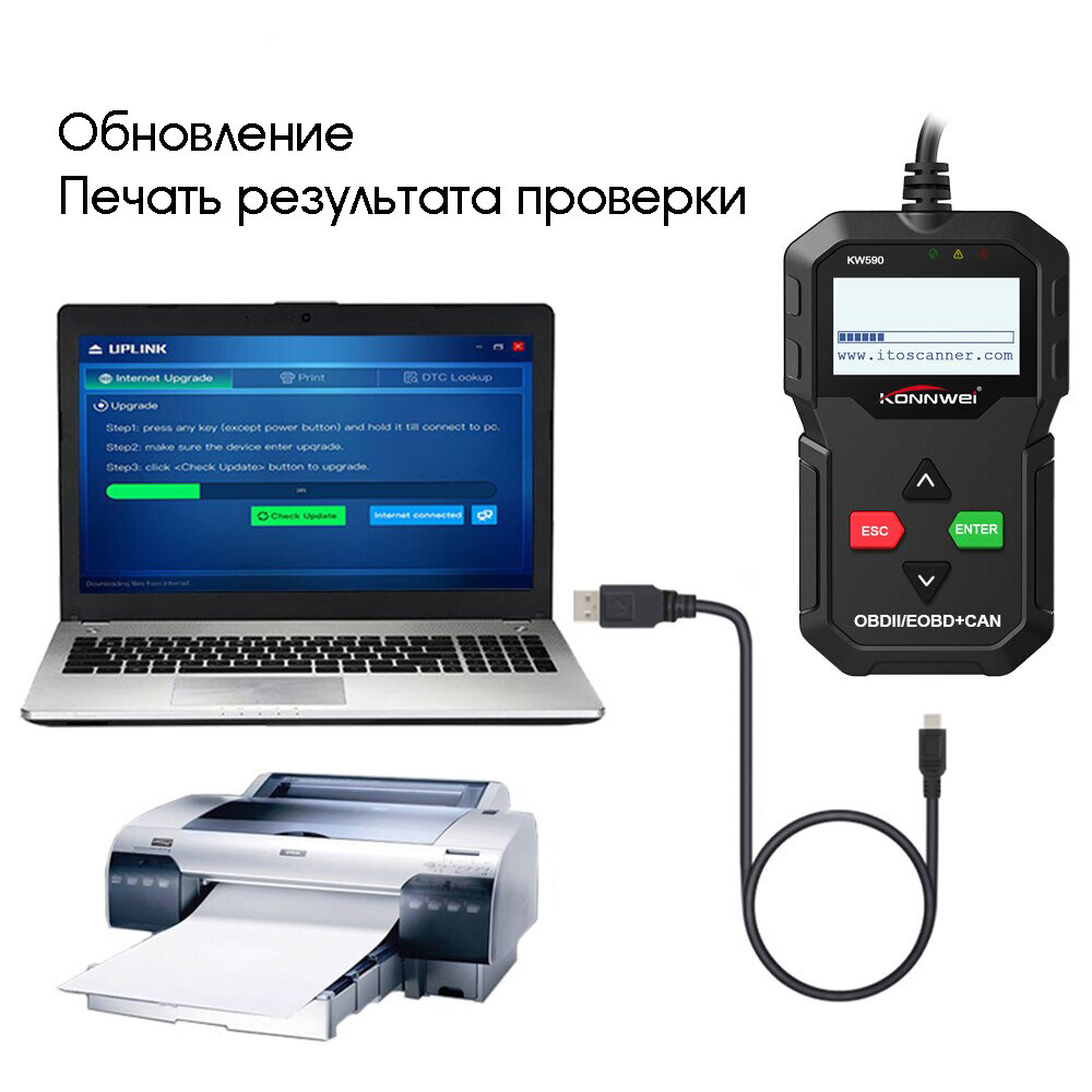 Автосканер OBD KONNWEI KW-590 (OBD2/EOBD+CAN) Windows 32-разрядная, 12В, 127*78 мм интересное: