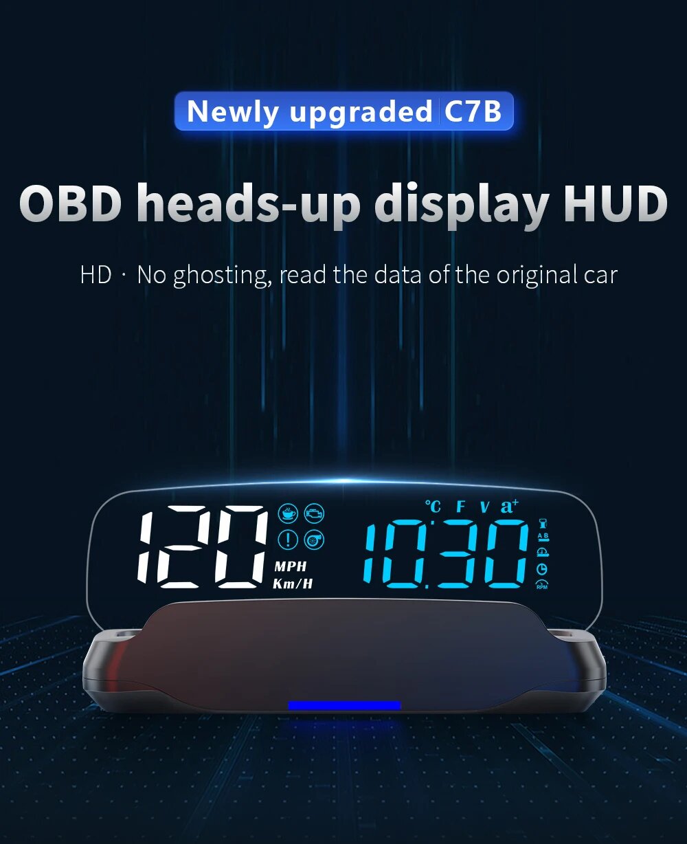 C7B Auto OBD2 Проекционный дисплей Авто электроника HUD Дисплей проектора Цифровой автомобильный спидометр Аксессуары Компас Температура воды интересное: