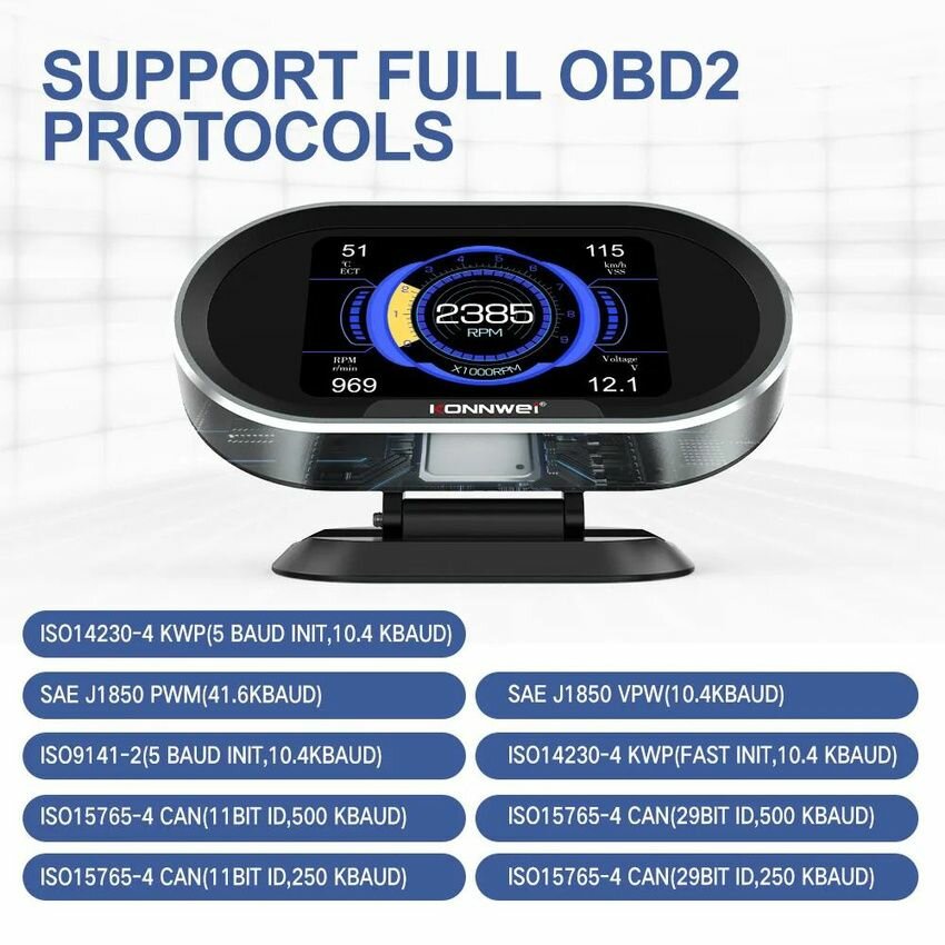 Автомобильный сканер OBD2 KONNWEI KW206 / Дисплей HUD Head Up/Датчик расхода топлива автомобиля, температуры воды интересное: