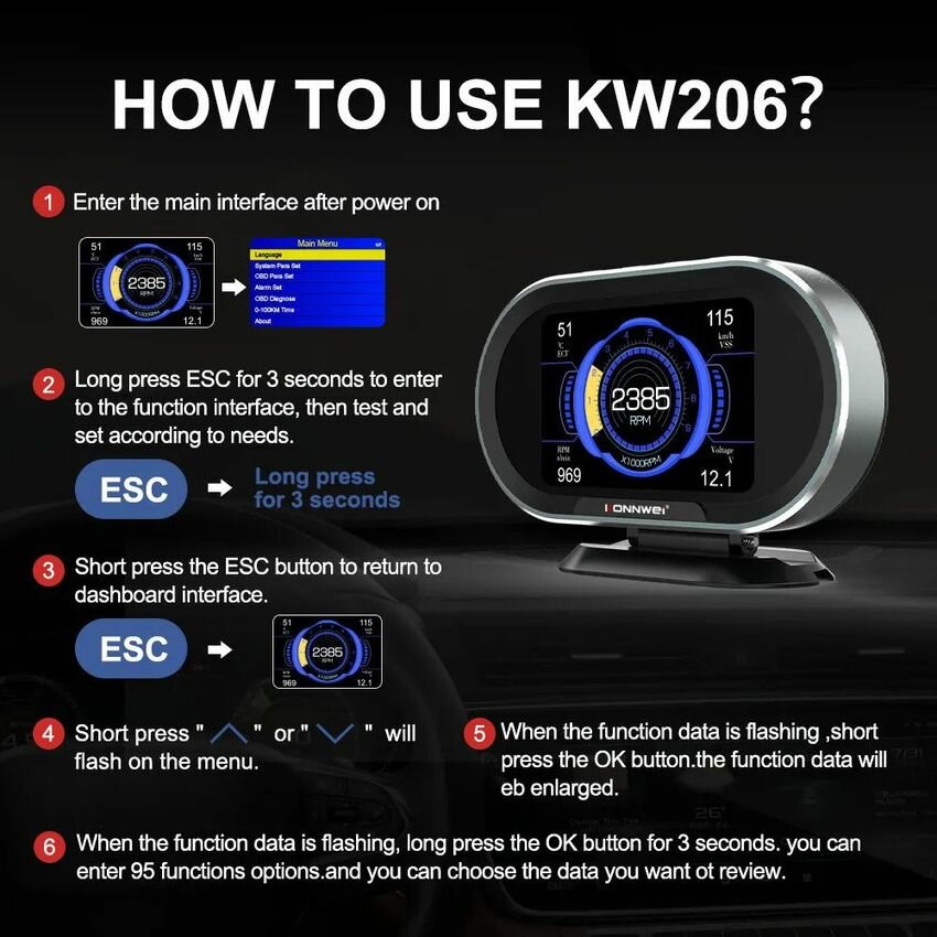 Ниже Вы можете прочитать отзывы на Автомобильный сканер OBD2 KONNWEI KW206 / Дисплей HUD Head Up/Датчик расхода топлива автомобиля, температуры воды, ознакомится с подробными характеристиками, посмотреть интересные обзоры и фотографии на Автомобильный сканер OBD2 KONNWEI KW206 / Дисплей HUD Head Up/Датчик расхода топлива автомобиля, температуры воды.