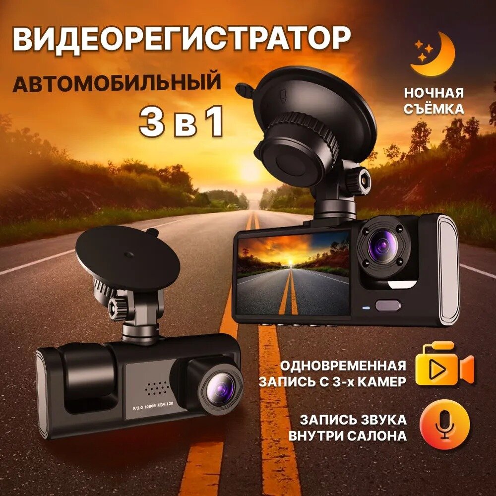 Автомобильный видеорегистратор, 3 камеры, Full HD, с G-датчиком интересное: