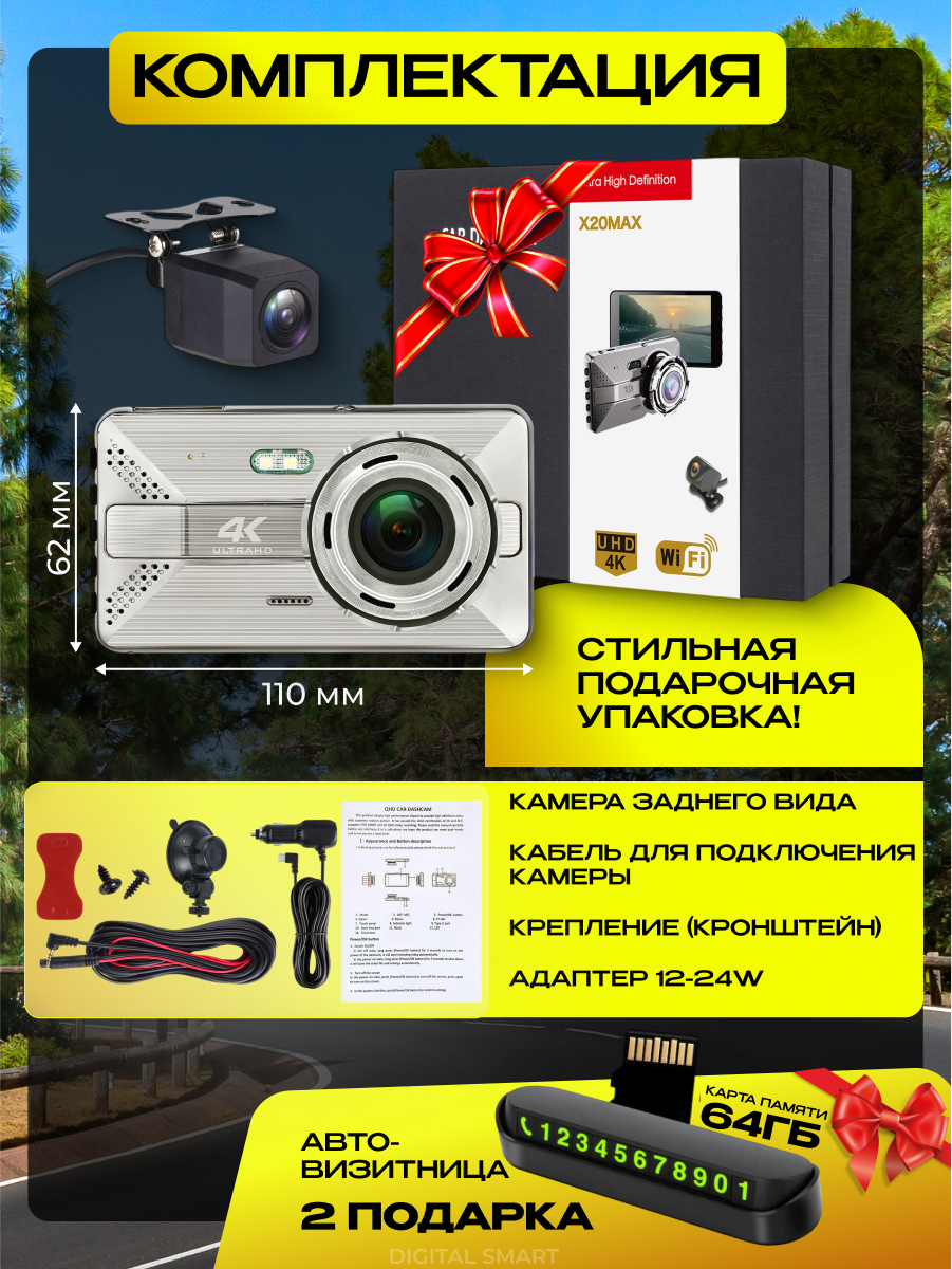 Видеорегистратор 4К, Wi-Fi, G-сенсор в подарок карта памяти и визитка