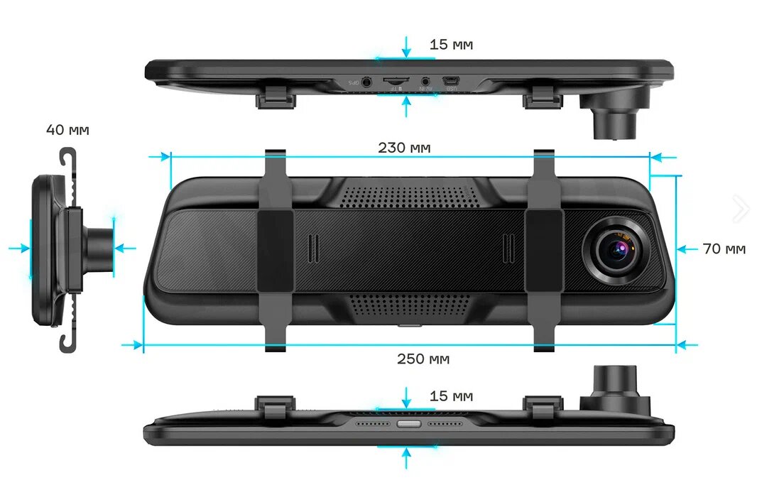 Автомобильный видеорегистратор "Зеркало заднего вида", Full HD, 10", черный интересное: