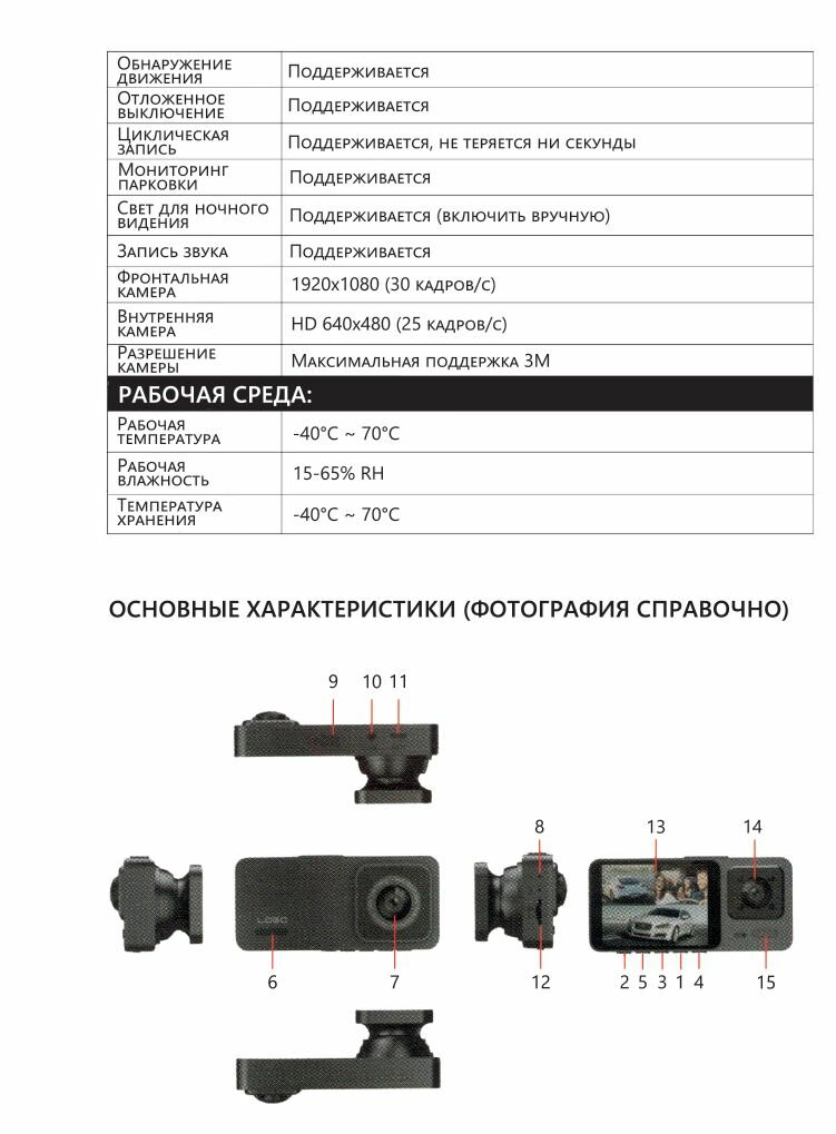 | Функции | датчик удара (G-сенсор), детектор движения в кадре |