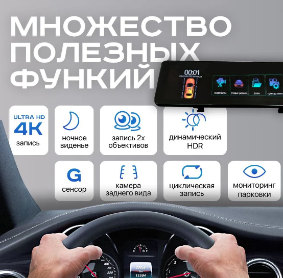 Автомобильный видеорегистратор зеркало 4K, 2 камеры, Wi-Fi, сенсорный дисплей, чёрный интересное: