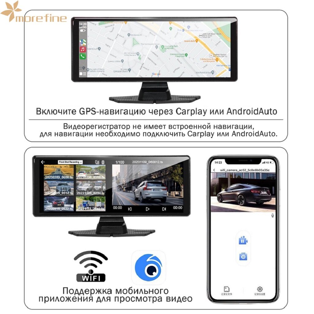 Видеорегистратор MOREFINE , с Wi-Fi, FullHD, камера 5 Мп, экран 2", 1/2,8", угол обзора 140°