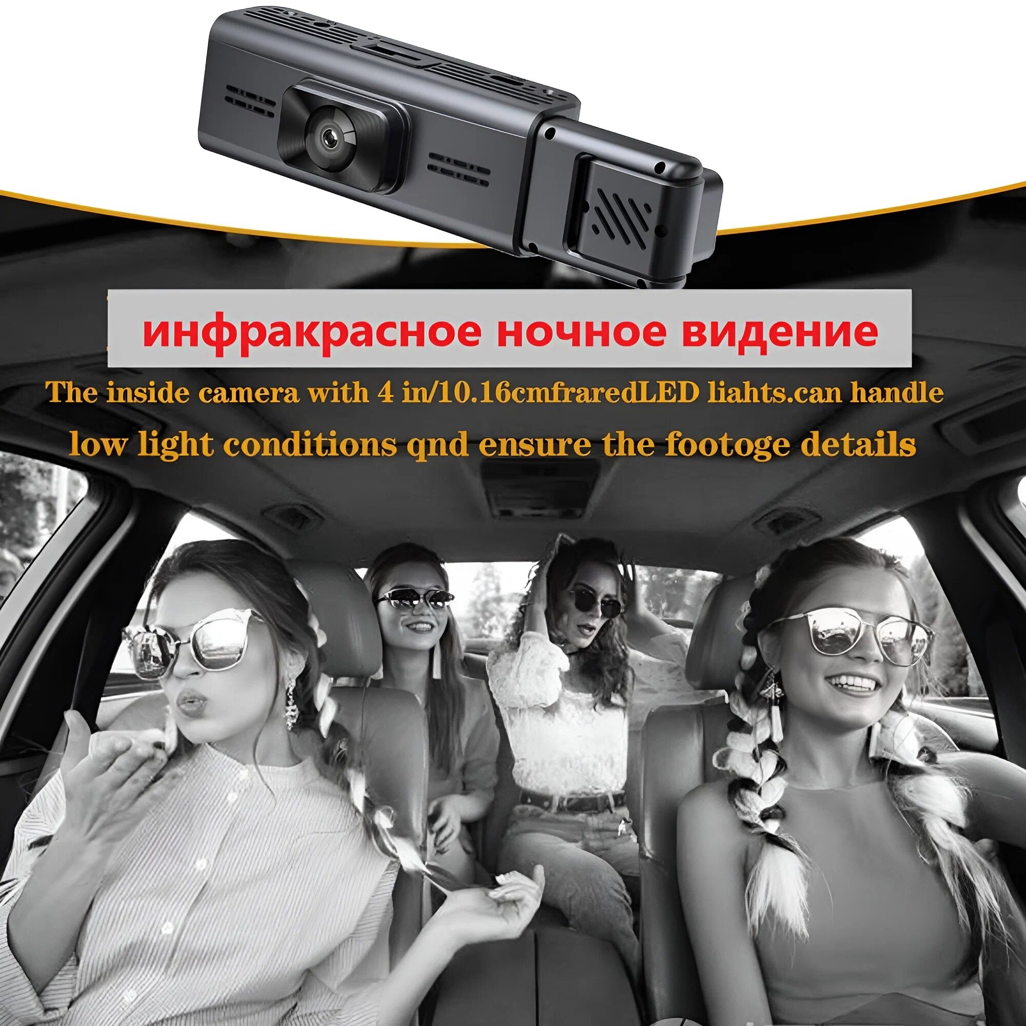 | Конструкция видеорегистратора | 3 камерыс экраном |