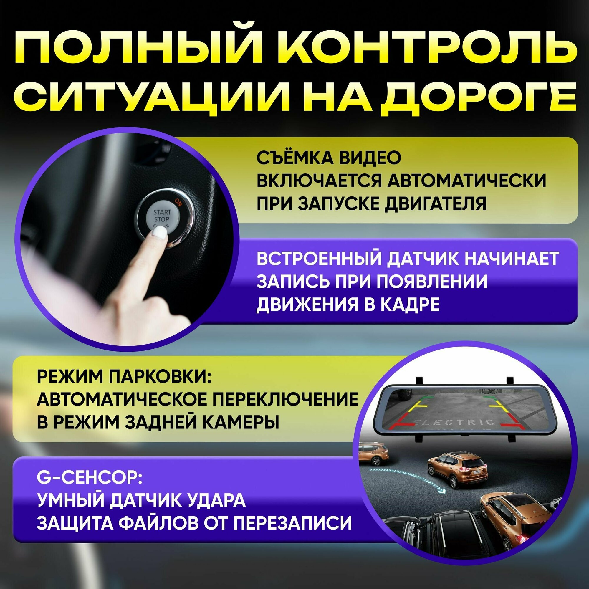Видеорегистратор автомобильный с 10-ти дюймовым сенсорным дисплеем Touch Screen, видеорегистратор зеркало с камерой заднего вида для авто интересное: