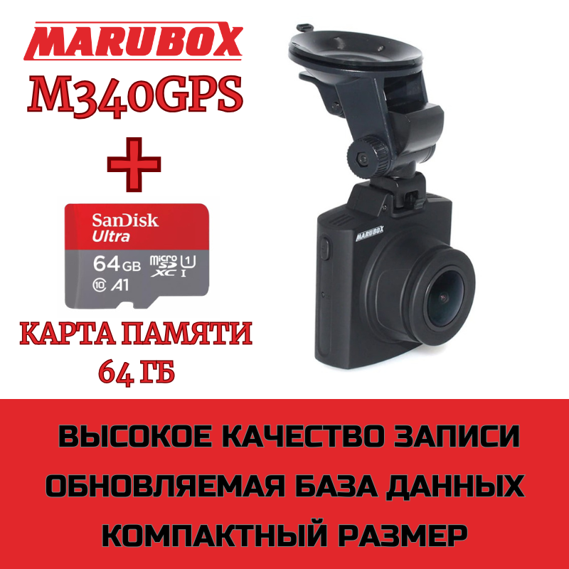 Купить Видеорегистратор с GPS-информатором Marubox M340GPS + карта памяти 64Gb