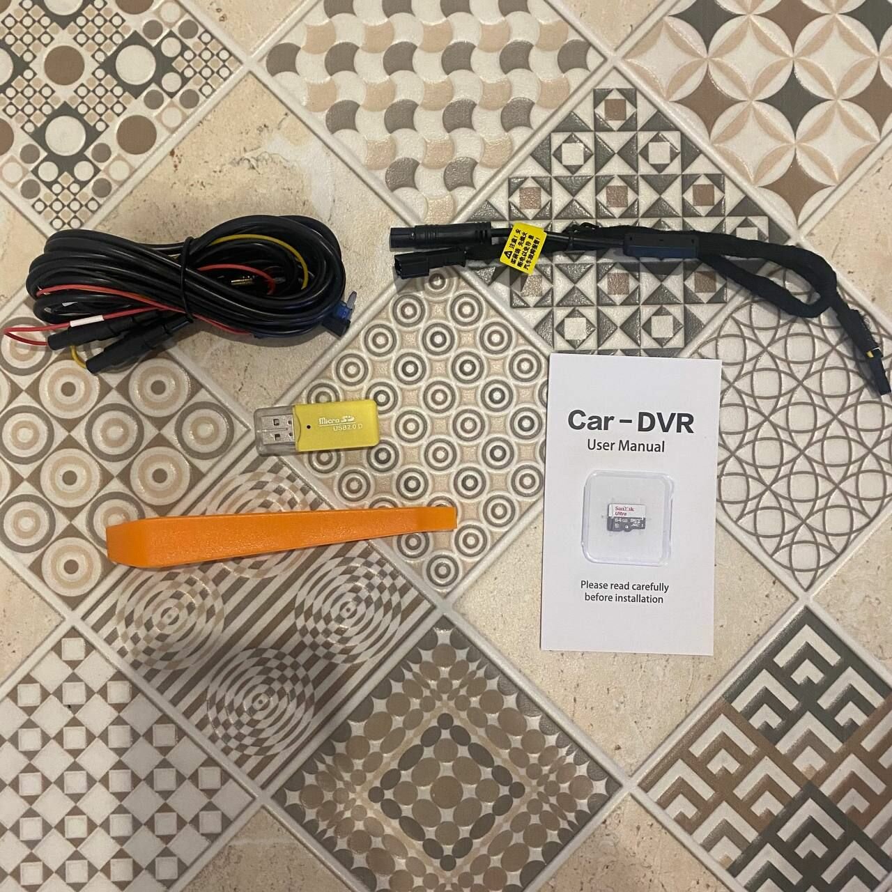 | Комплектация | Видеорегистратор, карта памяти на 64 ГБ, картридер, провод для подключения к датчику дождя, провод для подключения к блоку предохранителей, лопатка, инструкция, вторая камера с проводом |