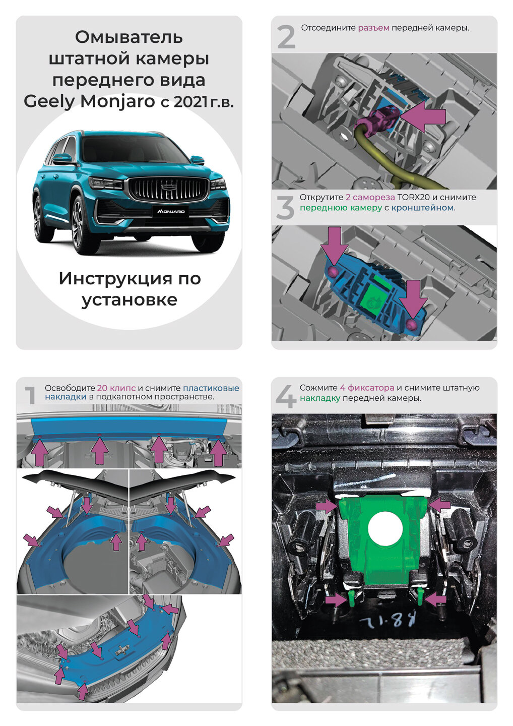Омыватель камеры переднего вида для Geely Monjaro дорестайлинг 2021-2025 интересное: