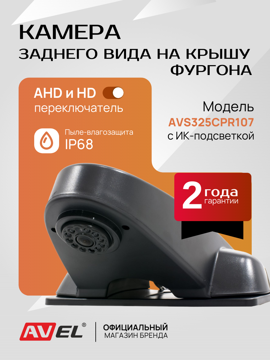 Камера заднего вида на крышу для фургонов, микроавтобусов и грузовиков AVEL AVS325CPR107 HD/AHD, чёрная интересное: