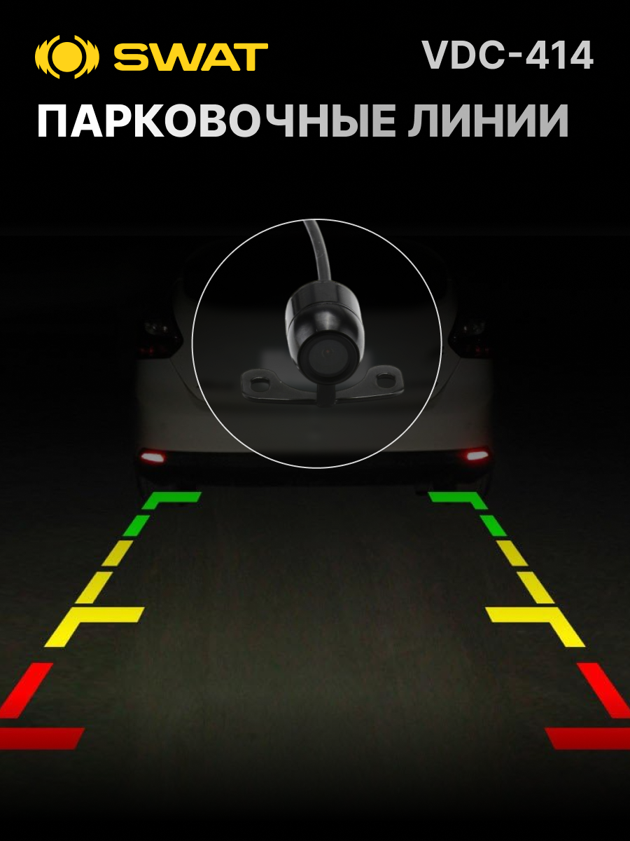 Универсальная камера заднего вида SWAT VDC-414 / CMOS PC7070 / угол обзора 120 градусов / парковочные линии интересное: