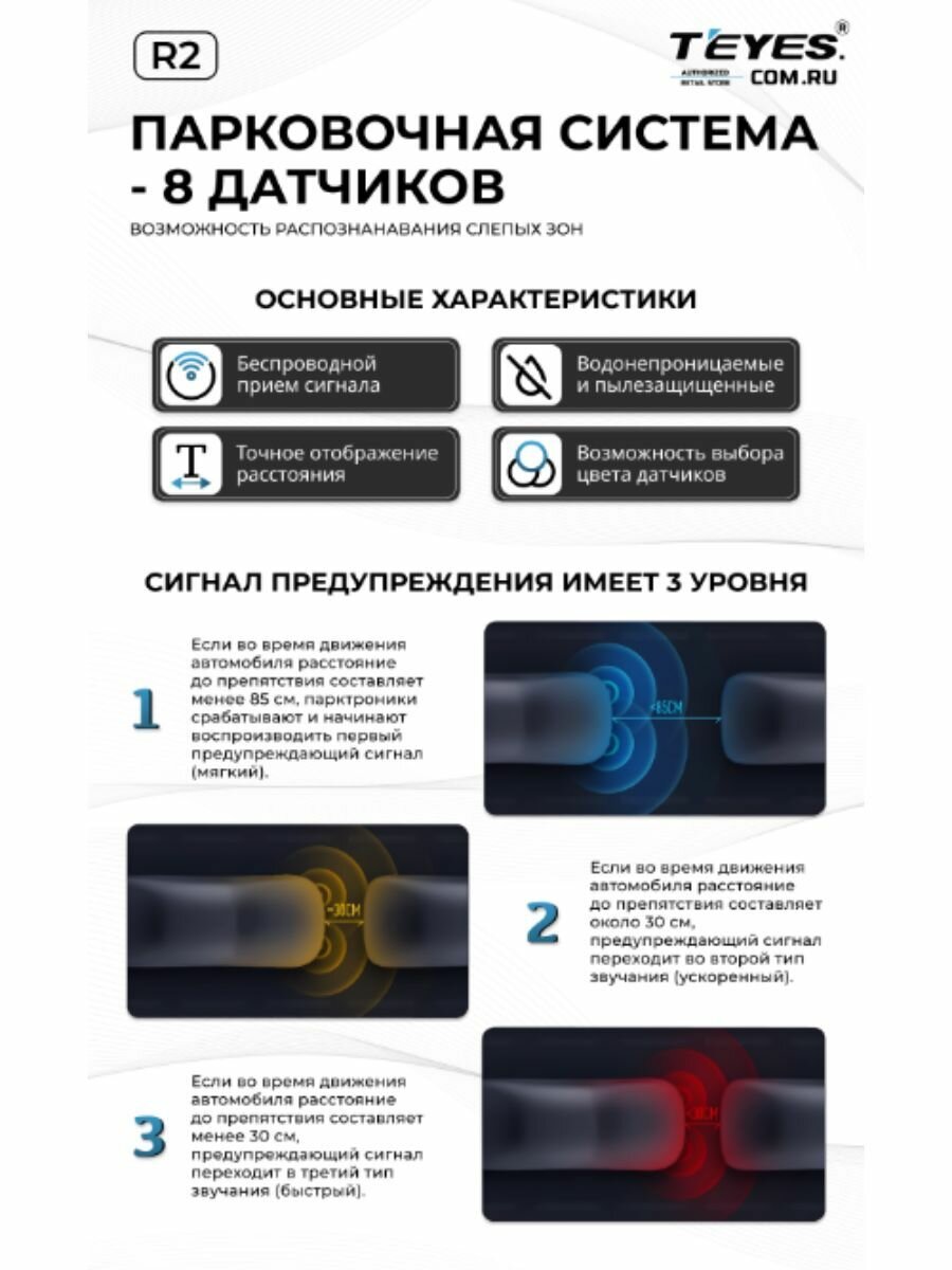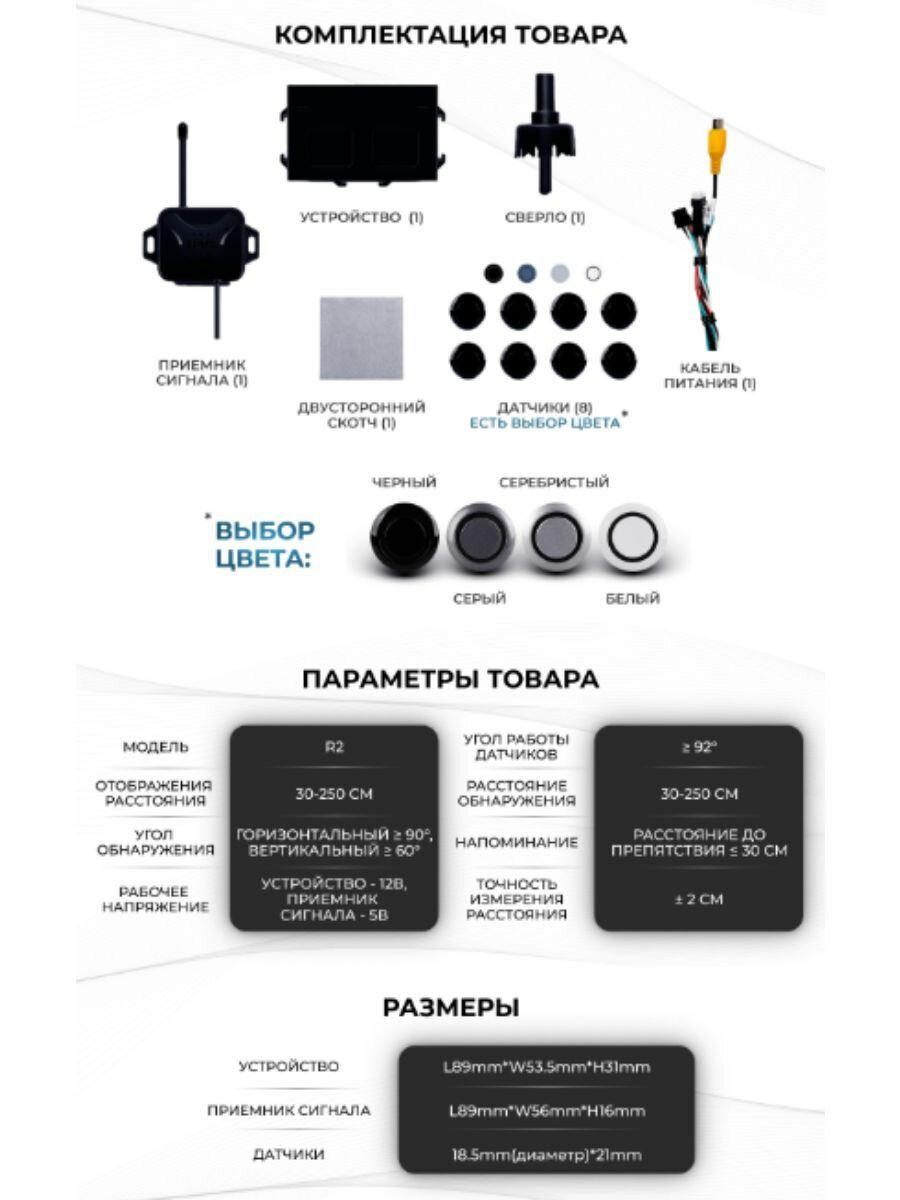 Передние и задние парктроники Teyes R2, Серебристые, 8 штук интересное:
