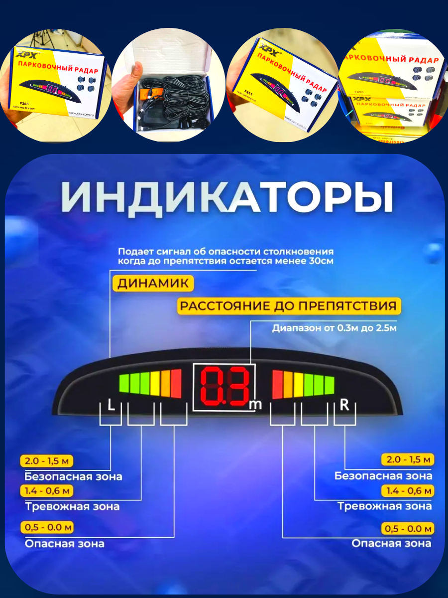Парктроник XPX F255, цифровой дисплей, 4 бионических сенсора, звуковой сигнал интересное: