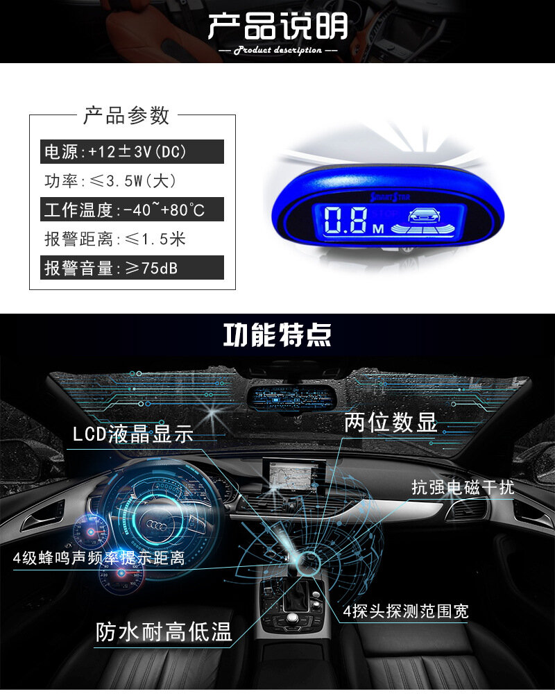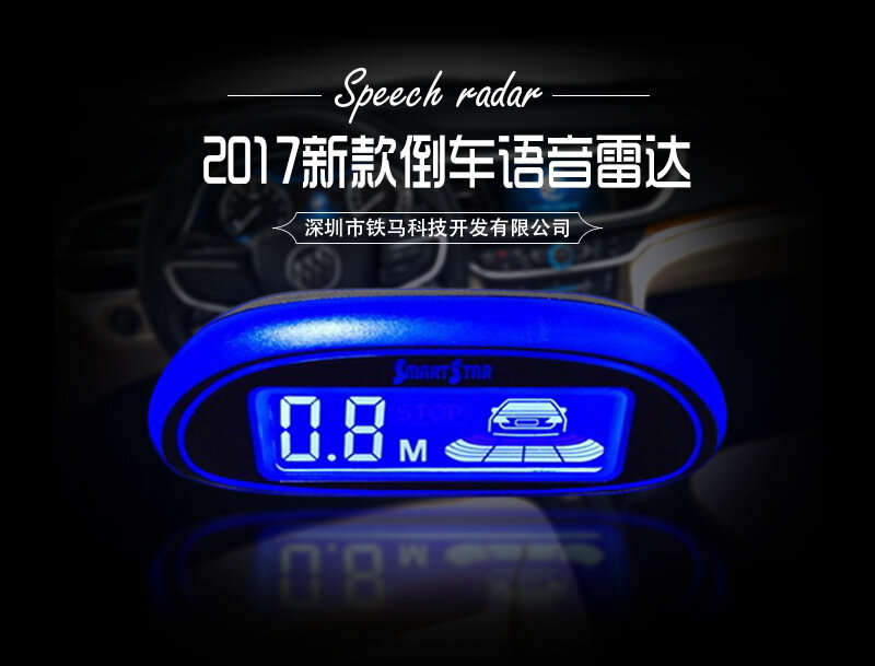 Парктроник, с голосовым и звуковым сигналами, 4 датчика, ЖК-дисплей, синяя подсветка