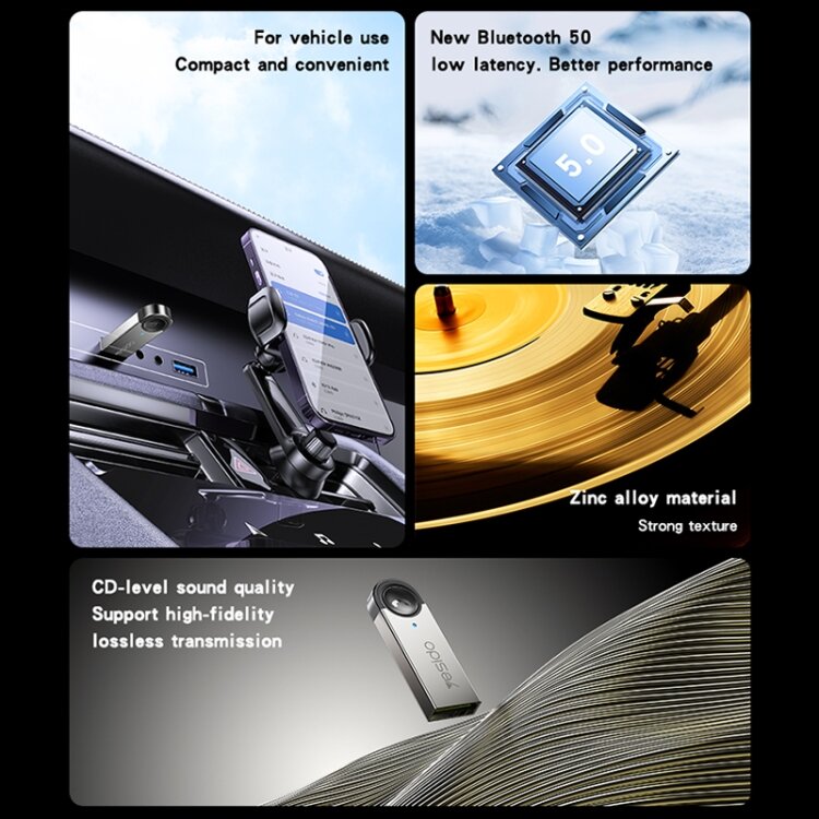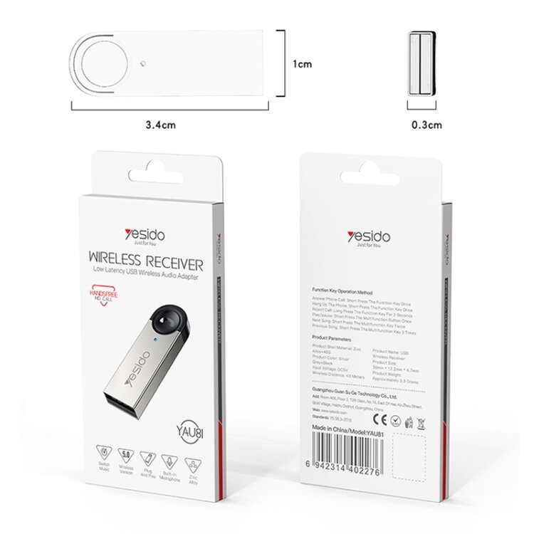 Беспроводной автомобильный аудиоадаптер Yesido YAU81 Wireless Reciver USB/BT5.0/Кнопка ответа звонка, Серый+ Черный интересное: