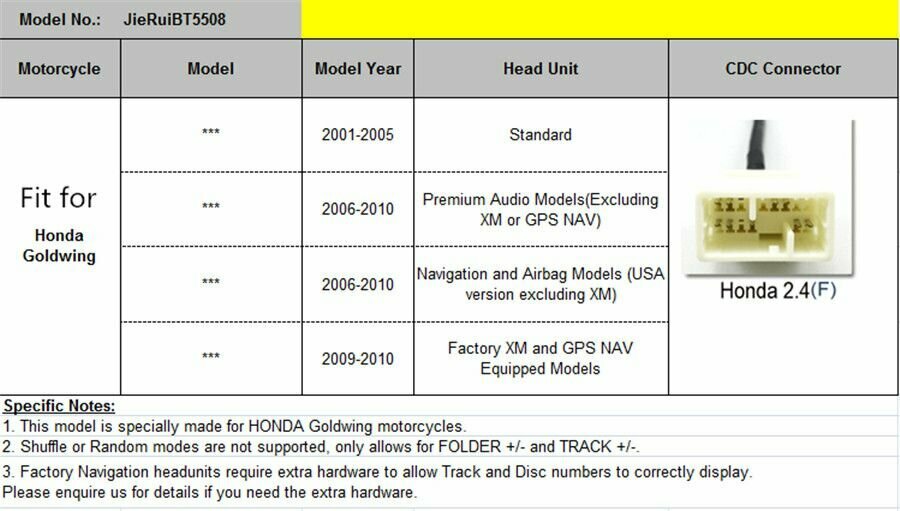 Ниже Вы можете прочитать отзывы на Bluetooth-адаптер для музыки Aux, гарнитура громкой связи для Honda Goldwing GL1800 Ao, ознакомится с подробными характеристиками, посмотреть интересные обзоры и фотографии на Bluetooth-адаптер для музыки Aux, гарнитура громкой связи для Honda Goldwing GL1800 Ao.