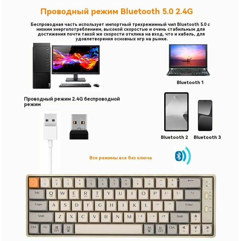 Langtu-GK65 беспроводная 2.4G Bluetooth с механической клавиатурой Gold Axis интересное: