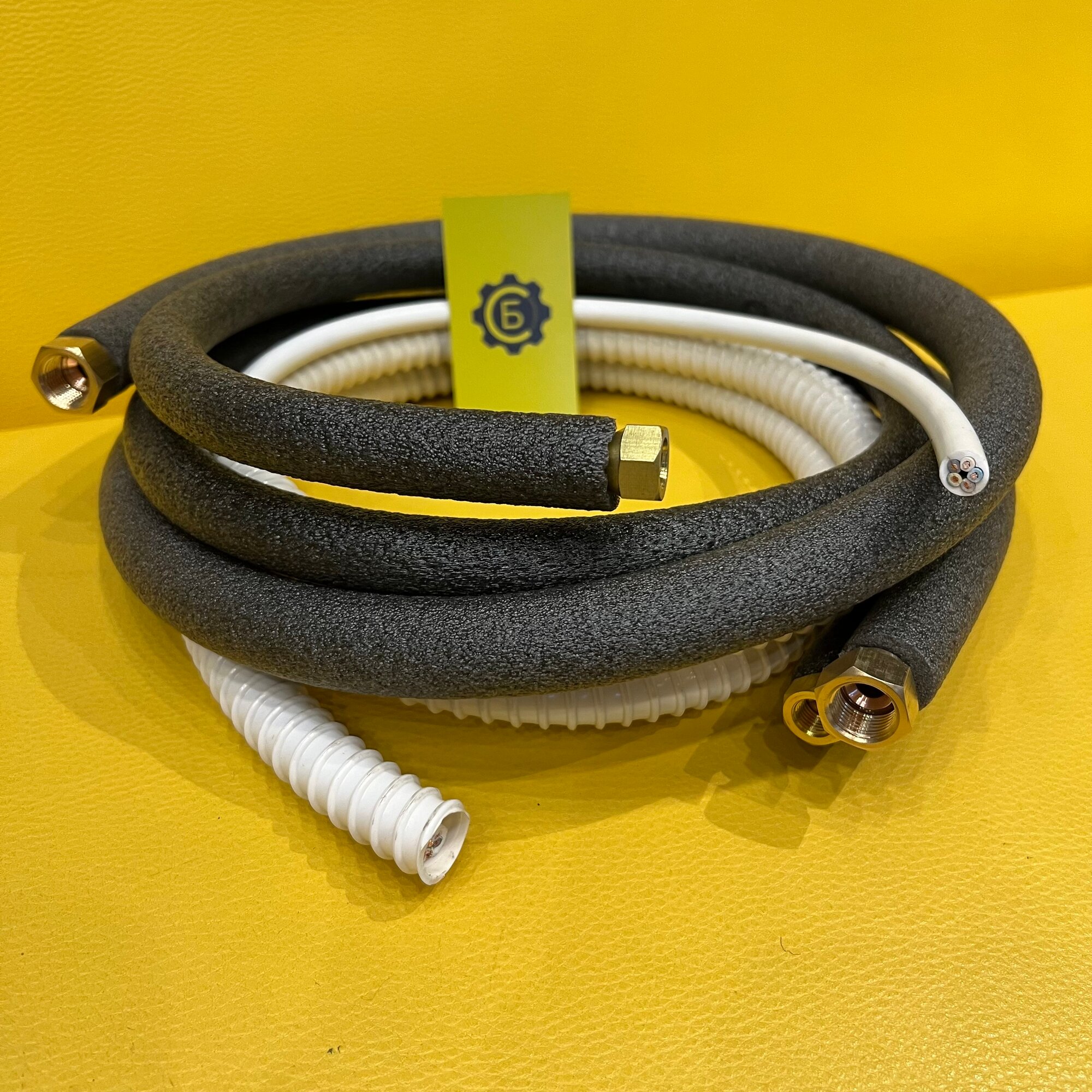 Готовый комплект длиной 1 м для самостоятельной установки кондиционера. 1/4 и 3/8 + дренаж + кабель 5х1,5 ГОСТ + гайки