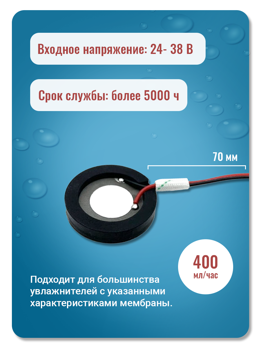 Купить Мембрана для увлажнителя воздуха, 25 мм (30 мм с уплотнителем), 1,7 мГц с проводом и коннектором