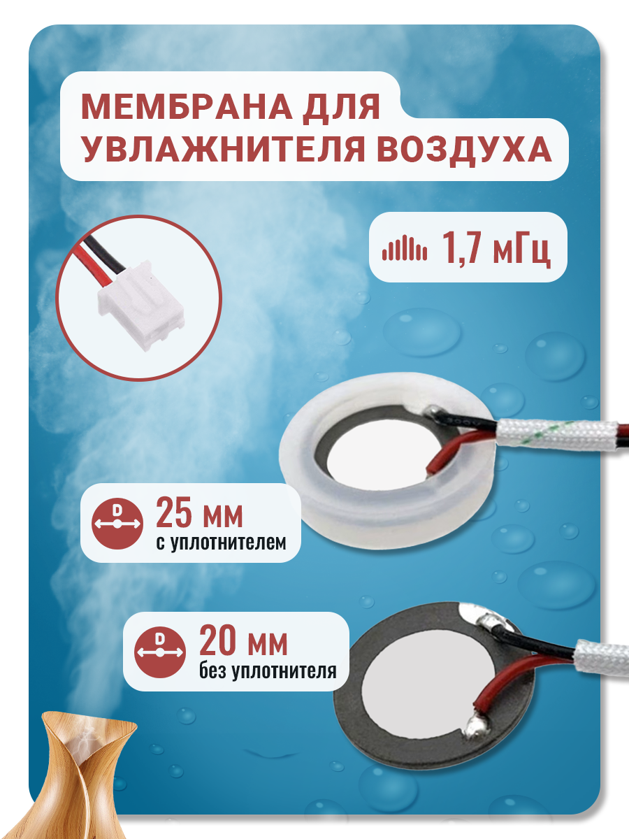 Купить Мембрана для увлажнителя воздуха, 20 мм (25 мм с уплотнителем), 1,7 мГц с проводом и коннектором