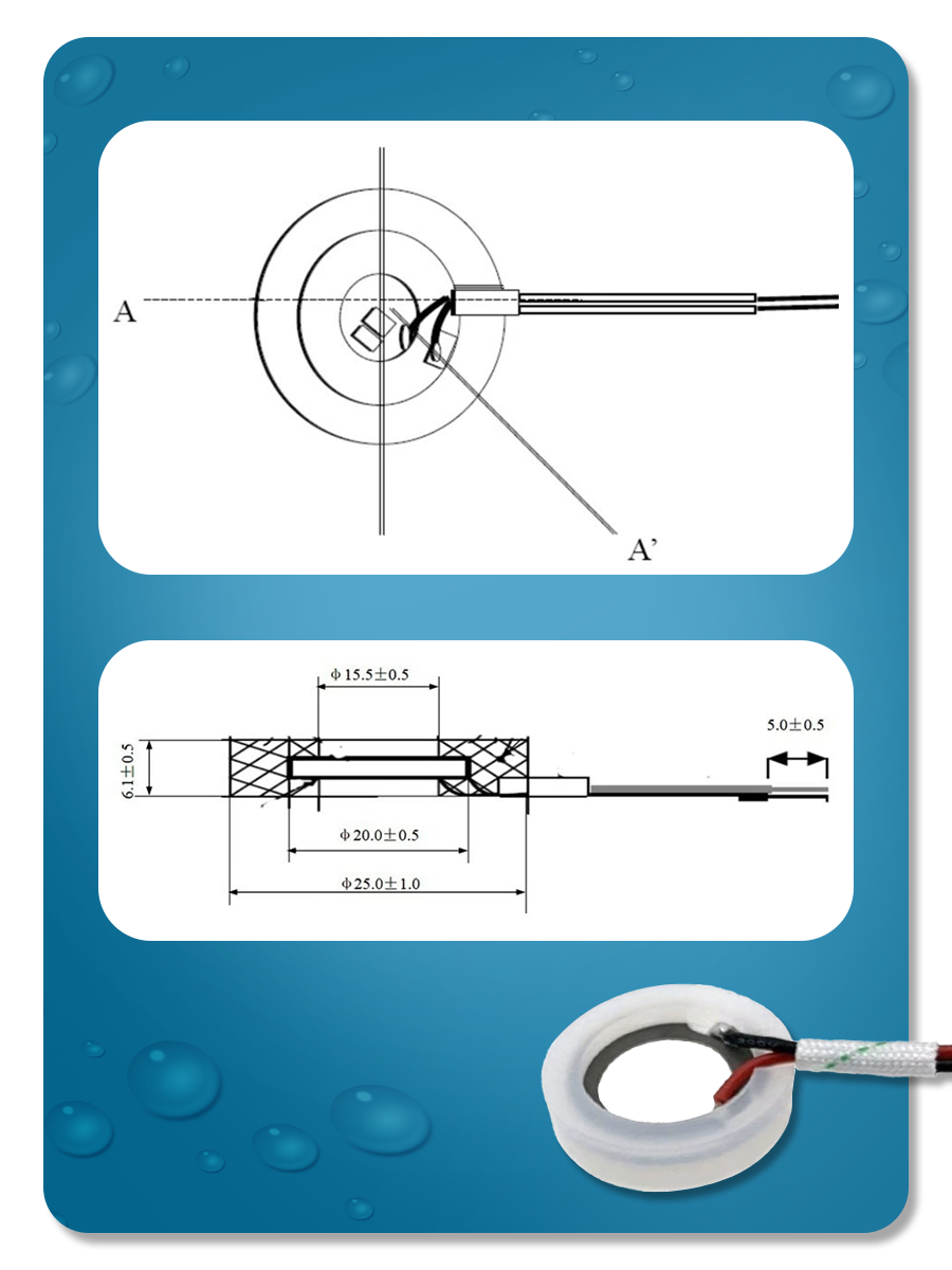 Мембрана для увлажнителя воздуха, 25 мм (30 мм с уплотнителем), 1,7 мГц с проводом и коннектором